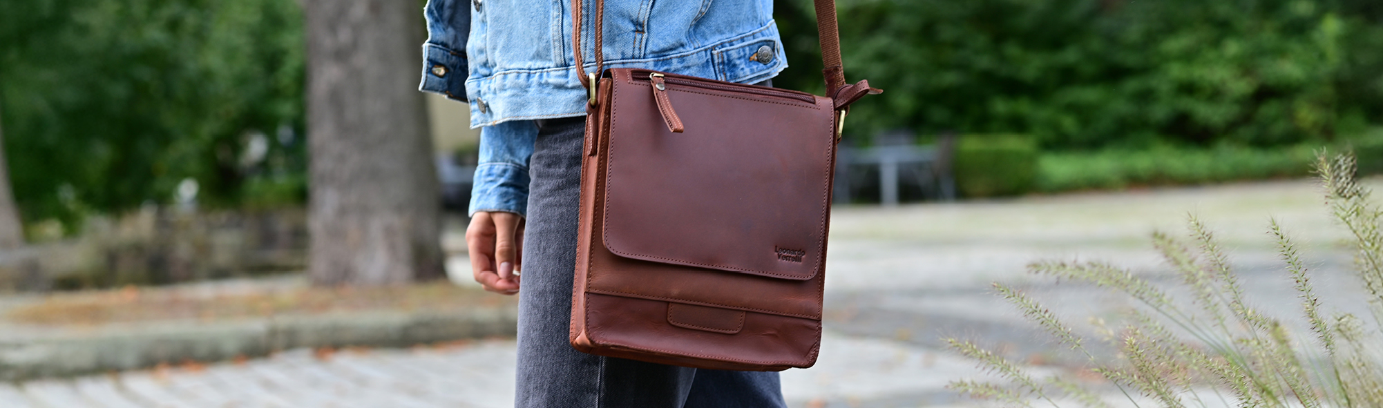 "Alfred", Leonardo Verrelli Umhängetasche aus Echtleder, braun