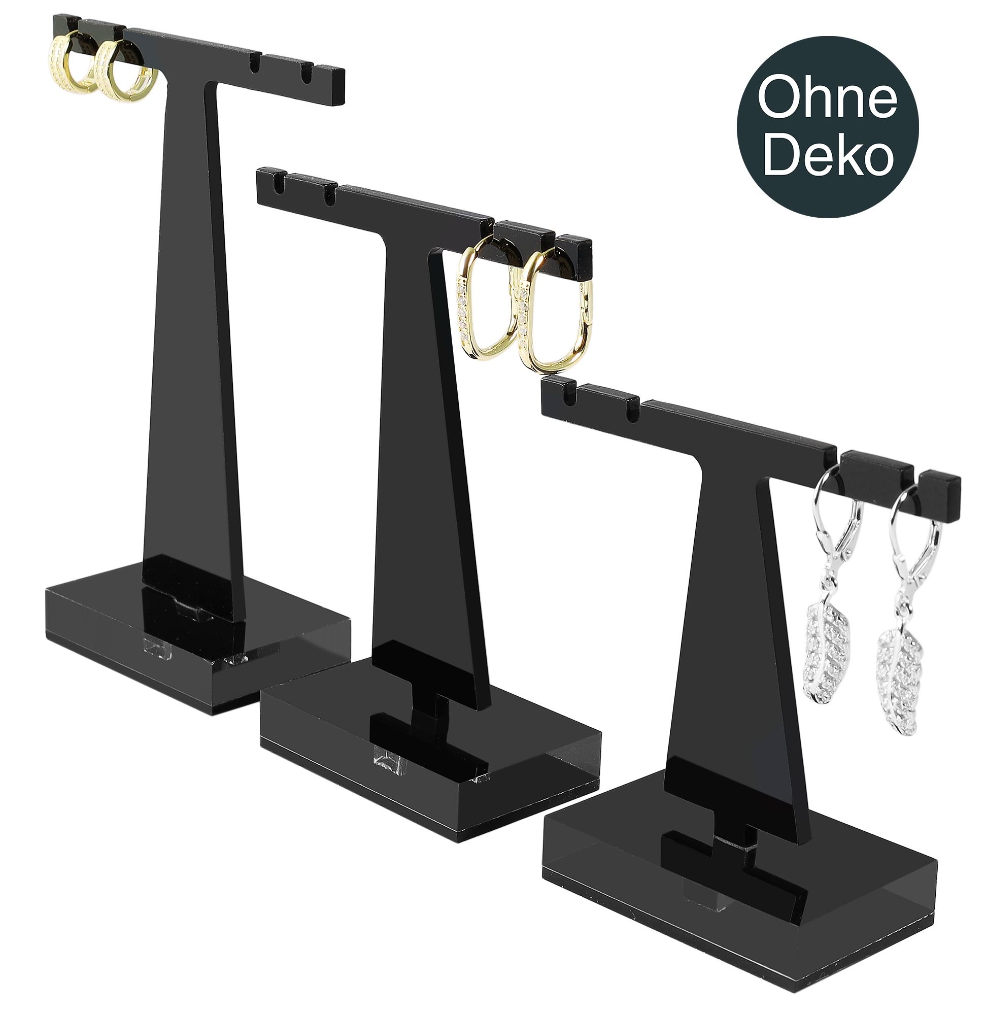Deze set van drie sieradendisplays biedt niet alleen een duidelijke en aantrekkelijke presentatie van je sieraden, maar ook verschillende maten voor een individueel ontwerp.