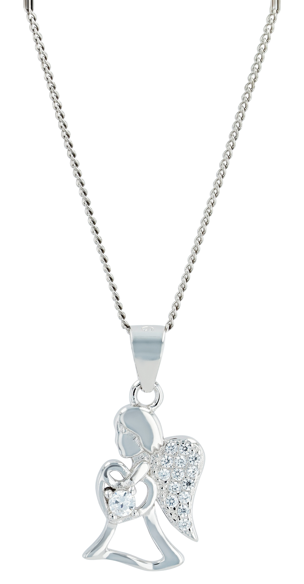 Productinformatie ""Adriel" 925/- Echt Silber Anhänger - Engel/ Herz (o. Kette), Zirkonia, rhodiniert - Kinder"