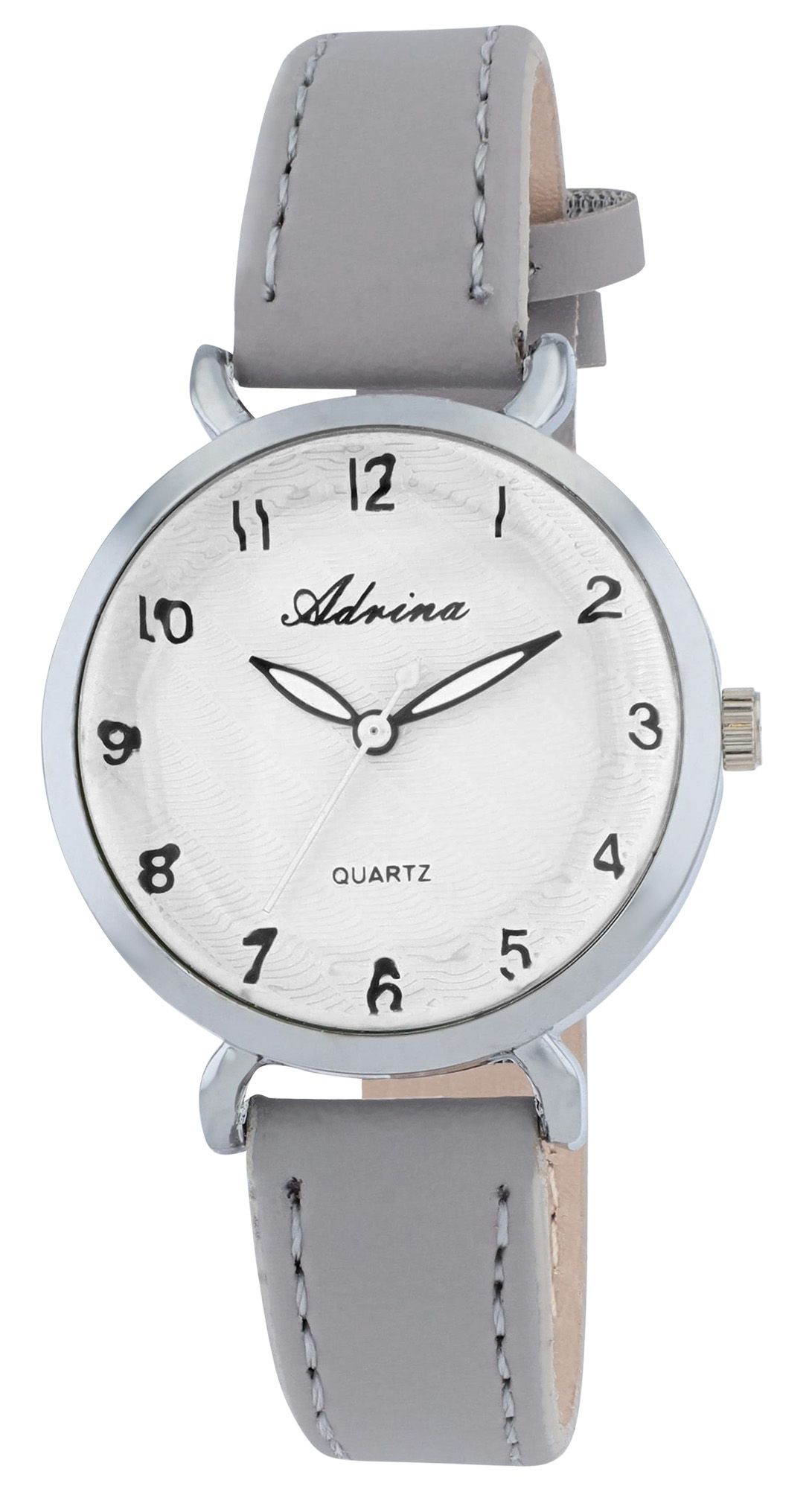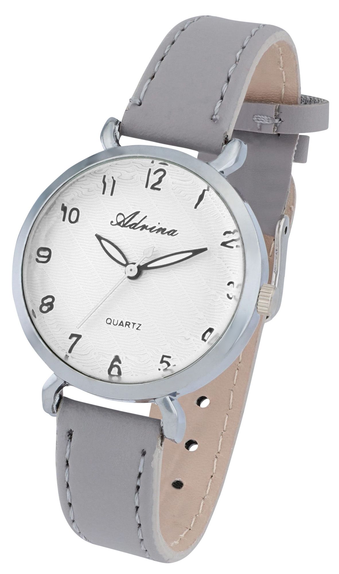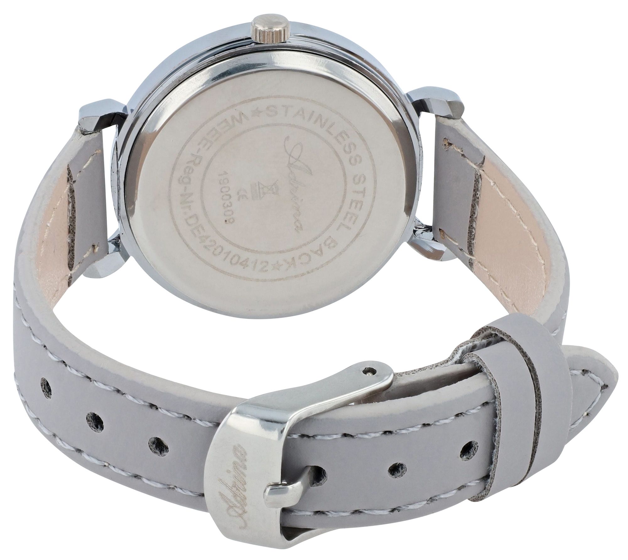 Adrina Damenuhr, Lederimitationsband, Ø 32,5 mm, grau/silberfarben