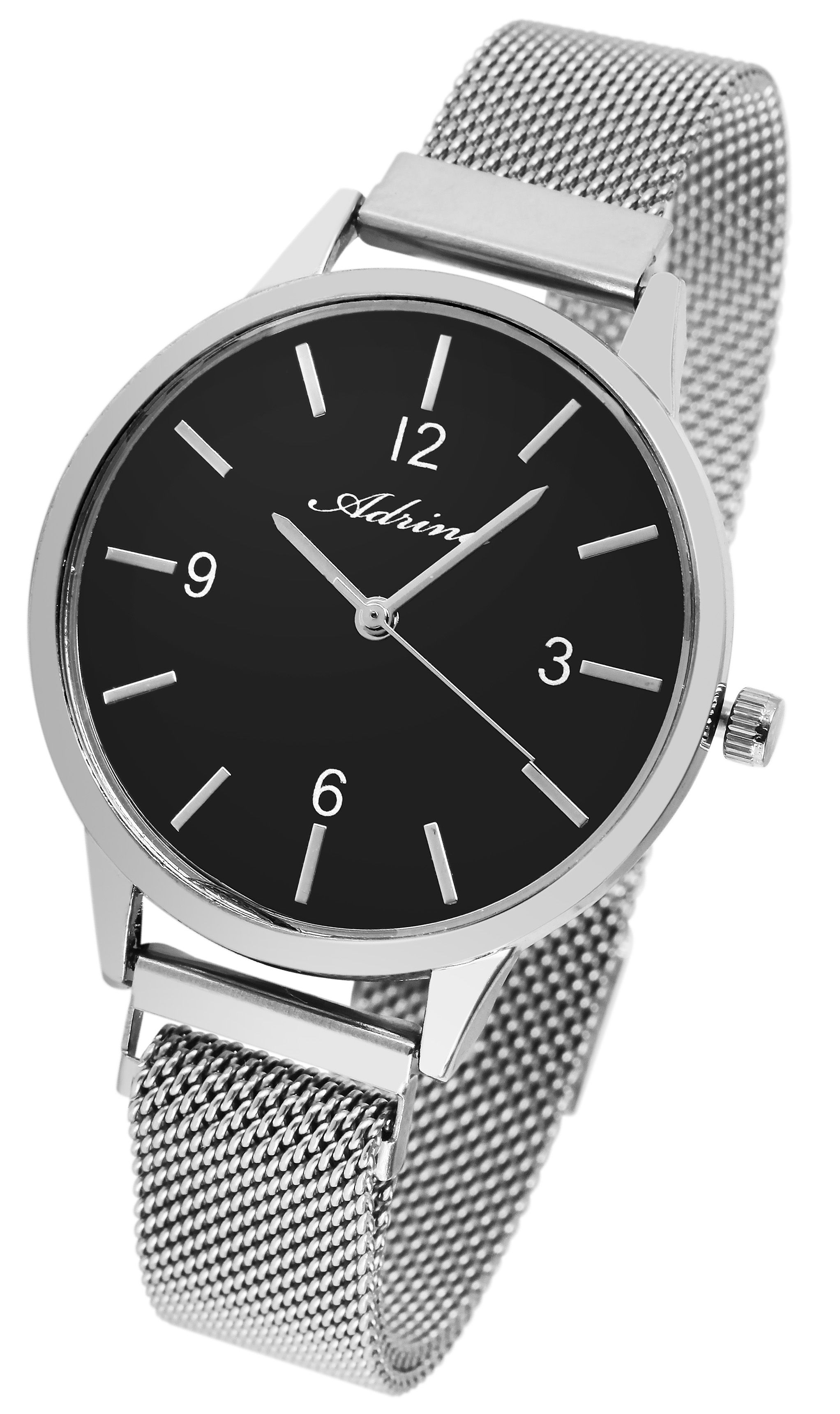 Productinformatie "Adrina Damenuhr mit Edelstahl-Milanesearmband, silberfarben/schwarz"