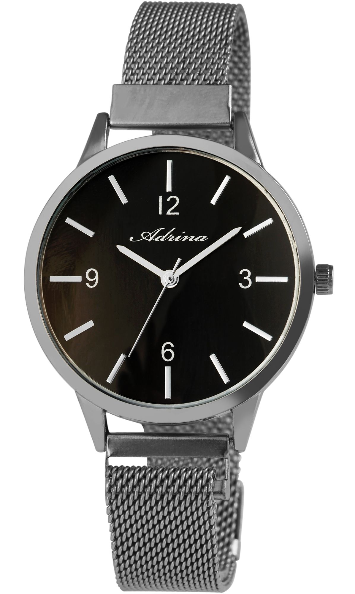 Adrina Damenuhr mit Edelstahl-Milanesearmband, silberfarben/schwarz