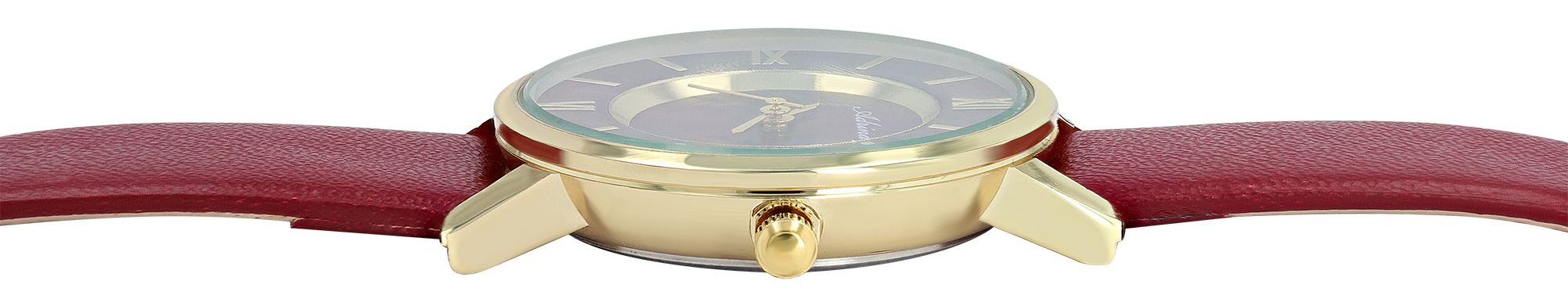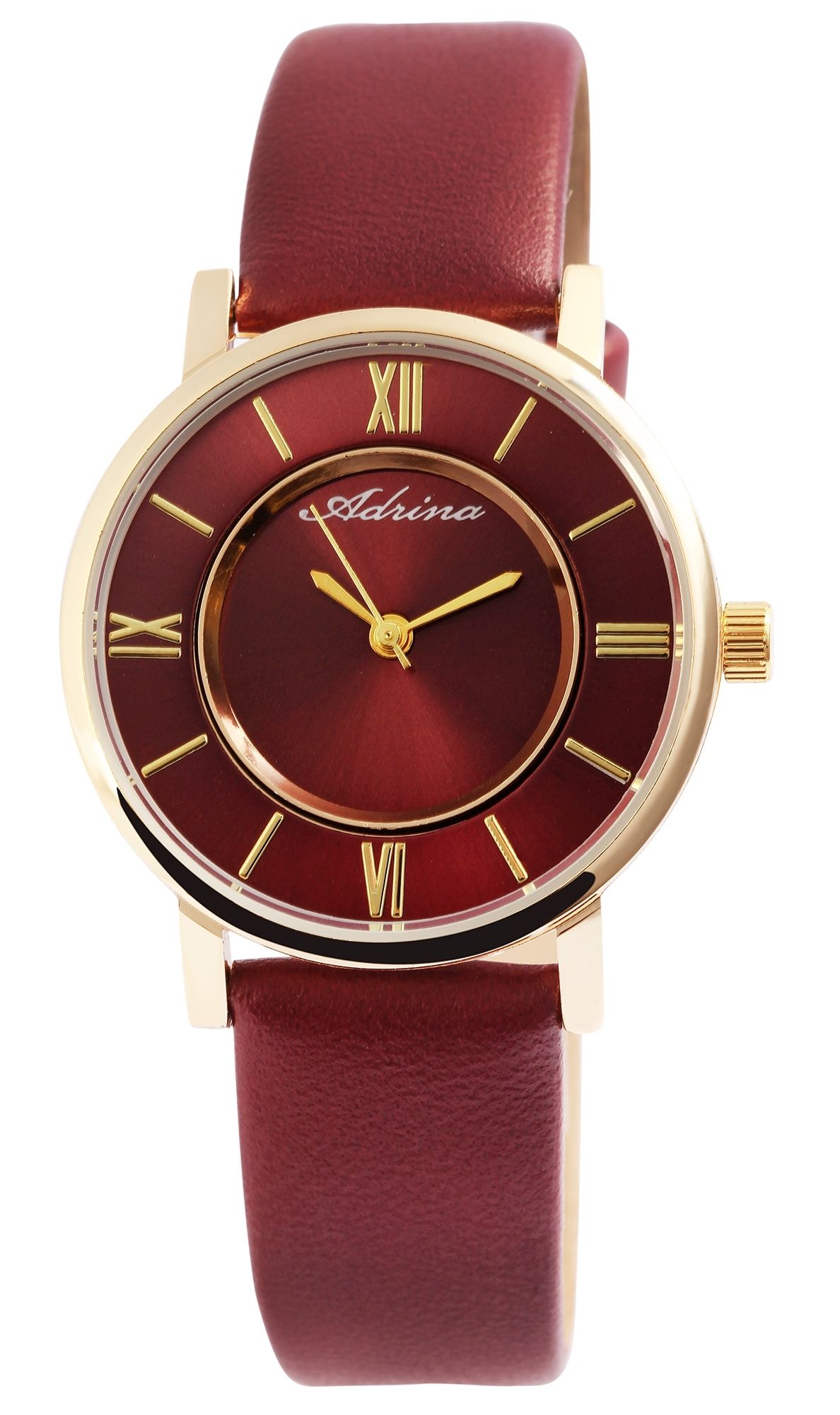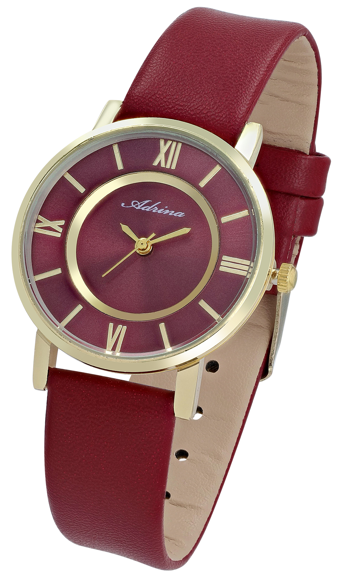 Adrina Damenuhr mit Lederimitationsband, Ø 32 mm, dunkelrot/ goldfarben
