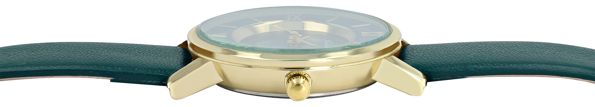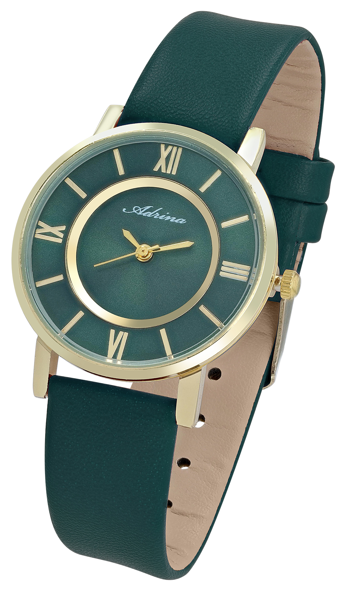 Adrina Damenuhr mit Lederimitationsband, Ø 32 mm, grün/ goldfarben