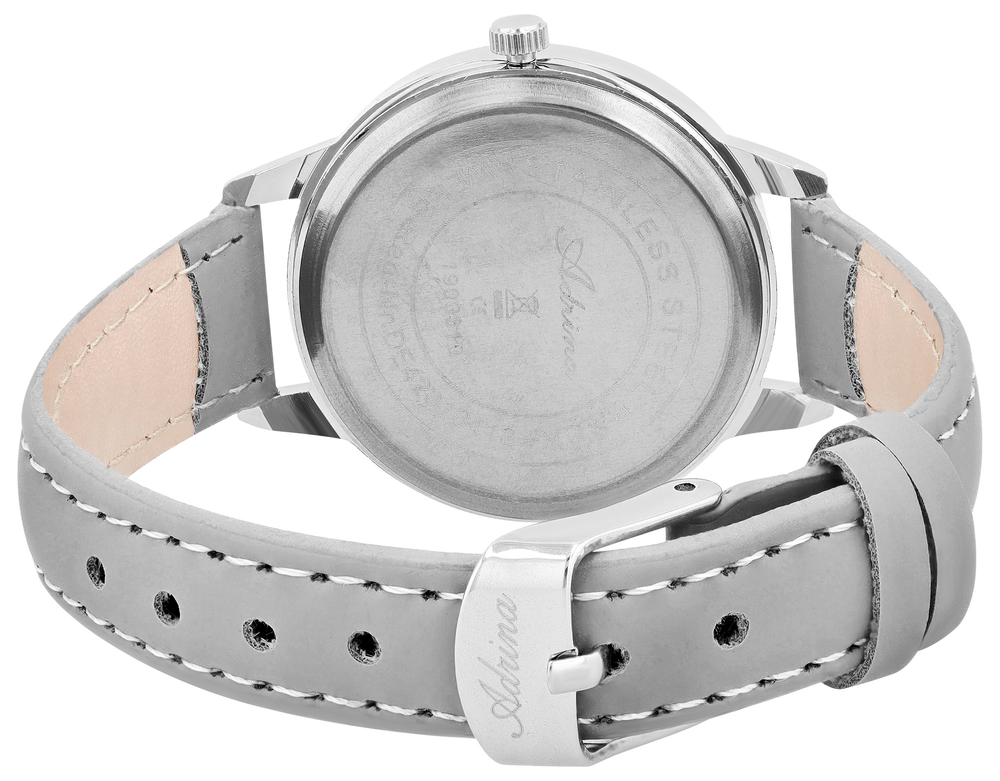 Productinformatie "Adrina Damenuhr mit Lederimitationsband, Ø 34 mm, grau"