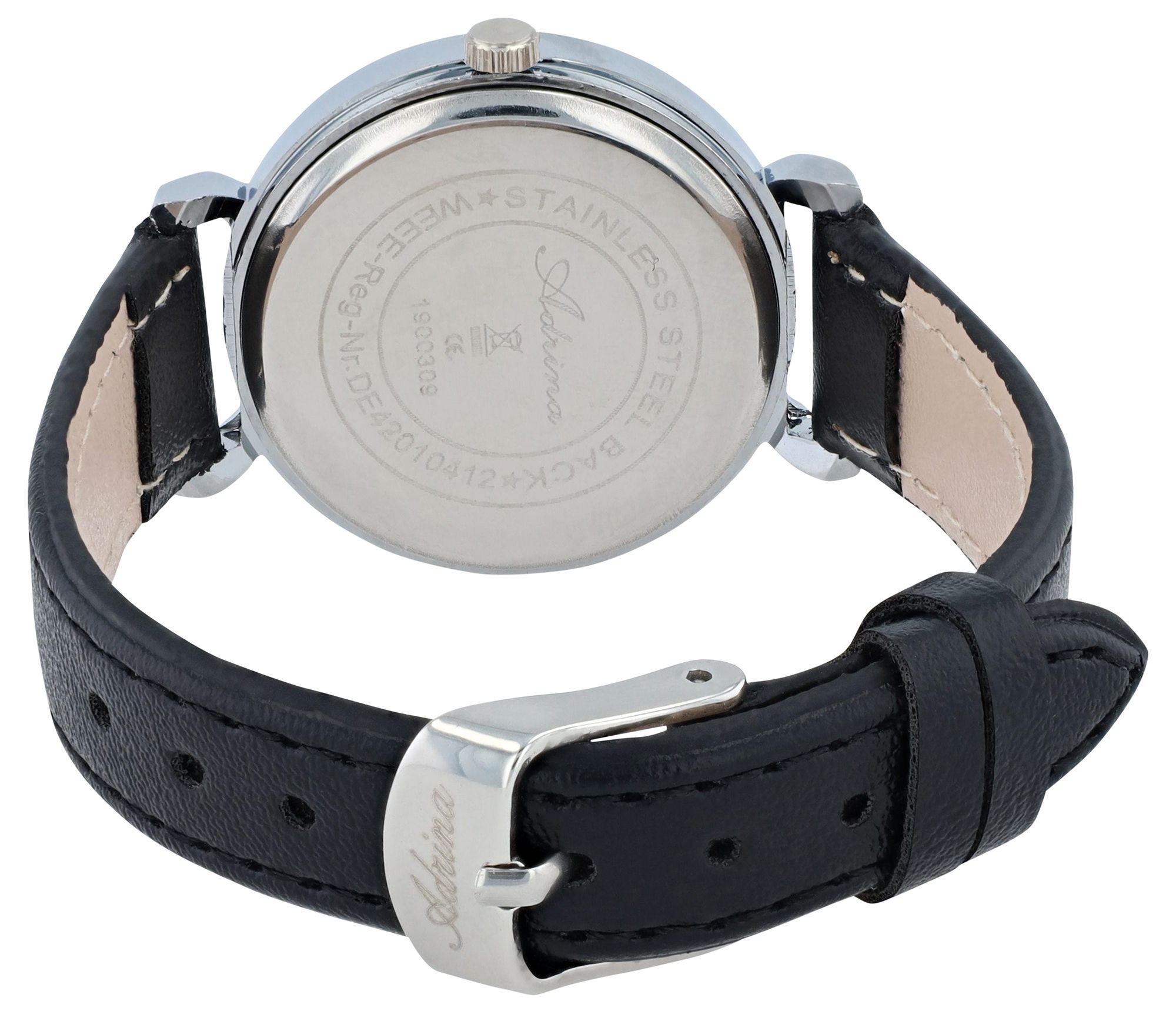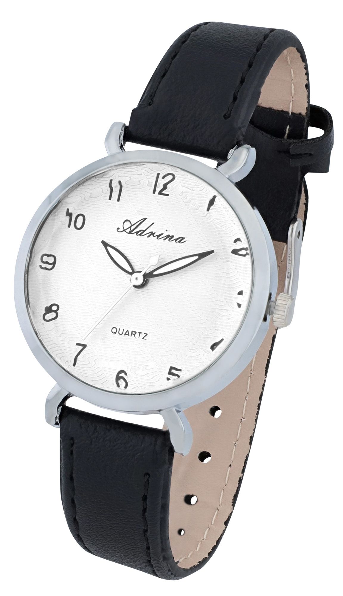 Productinformatie "Adrina dameshorloge, imitatieleren band, Ø 32,5 mm, zwart/zilverkleurig"