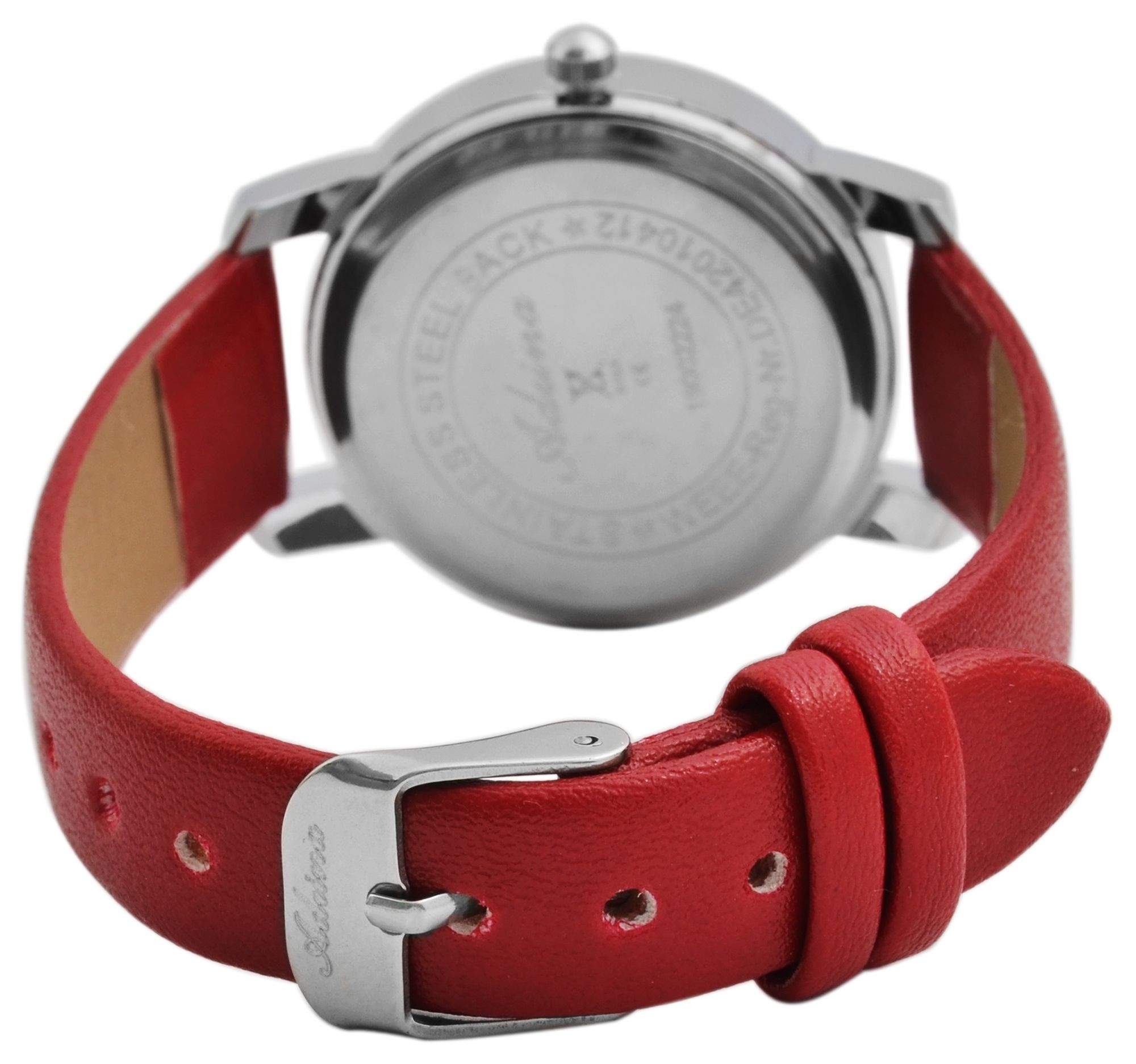 Productinformatie "Adrina dameshorloge met imitatieleren band, rood"