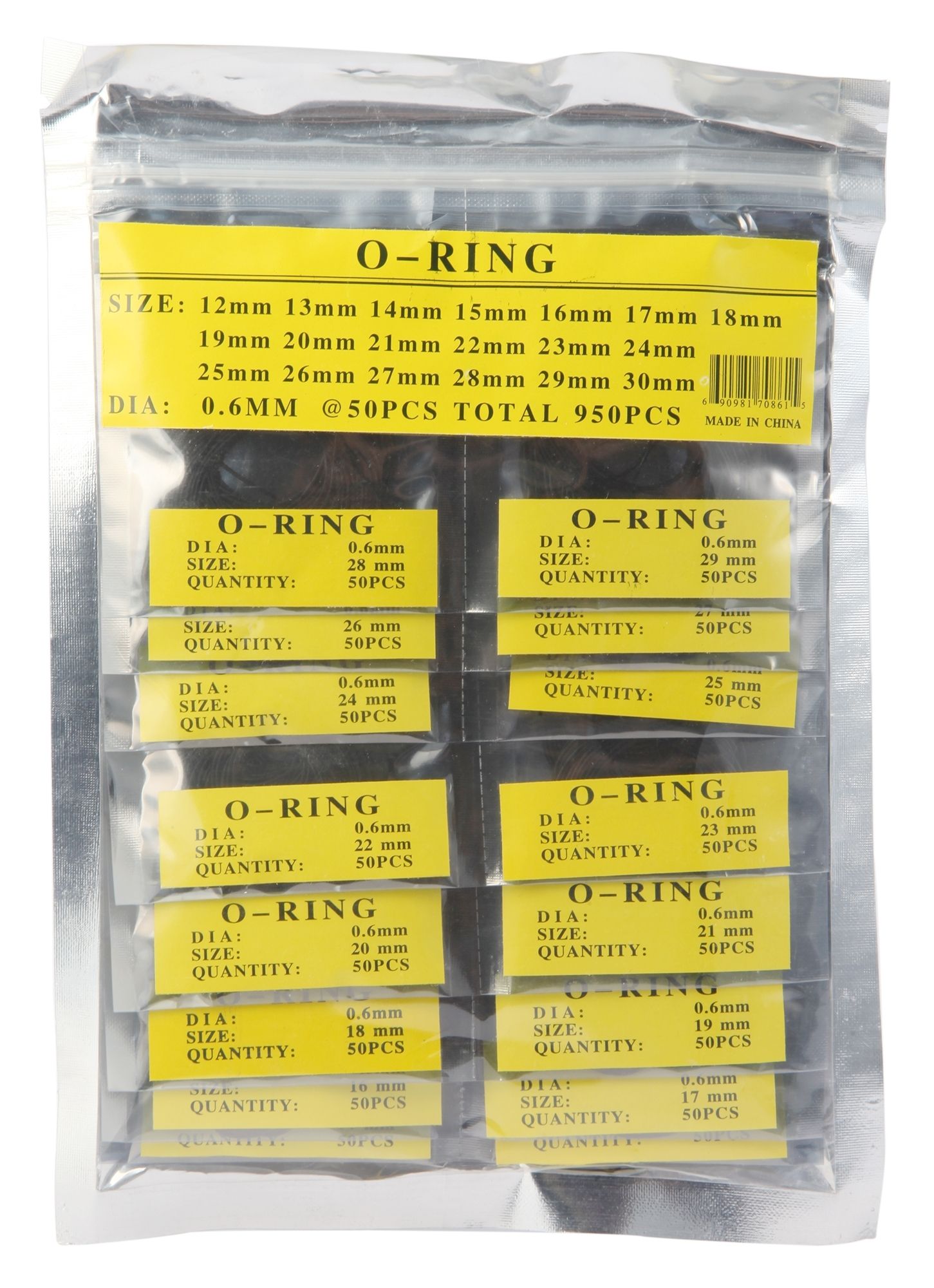 De afsluitringen zijn verkrijgbaar in 0,6 mm en 0,8 mm dikte. Elke set bevat afdichtringen in verschillende maten: