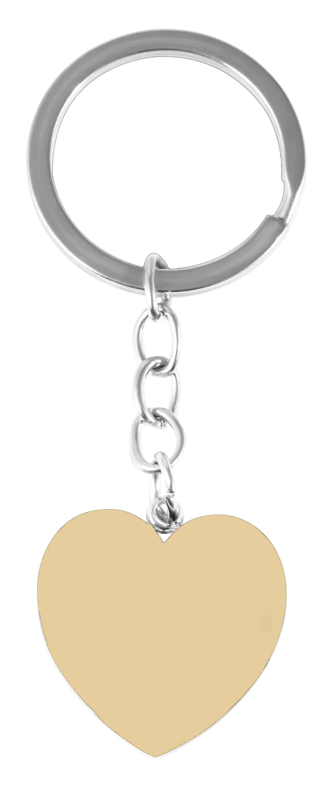 Der Anhänger in Herzform hat die Maße 26 x 26 x 2 mm. Dieses Herz hängt an einer 3 cm langen Edelstahlkette, die wiederum mit dem Schlüsselring, Aussendurchmesser 30 mm, verbunden ist.