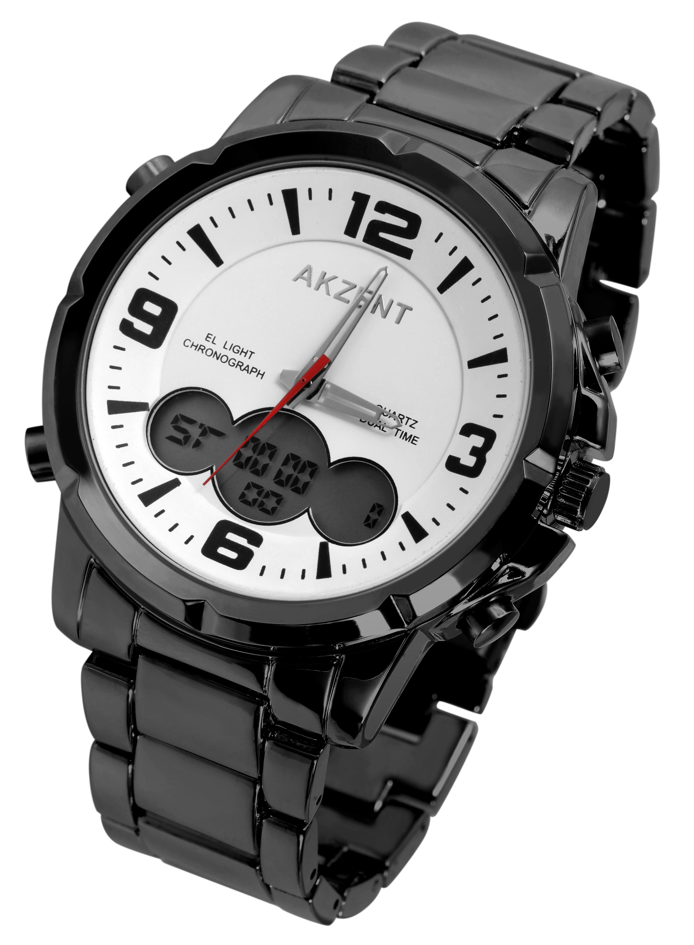 Productinformatie "Akzent Analog/Digital Herrenuhr mit Edelstahlarmband, schwarz/weiß"