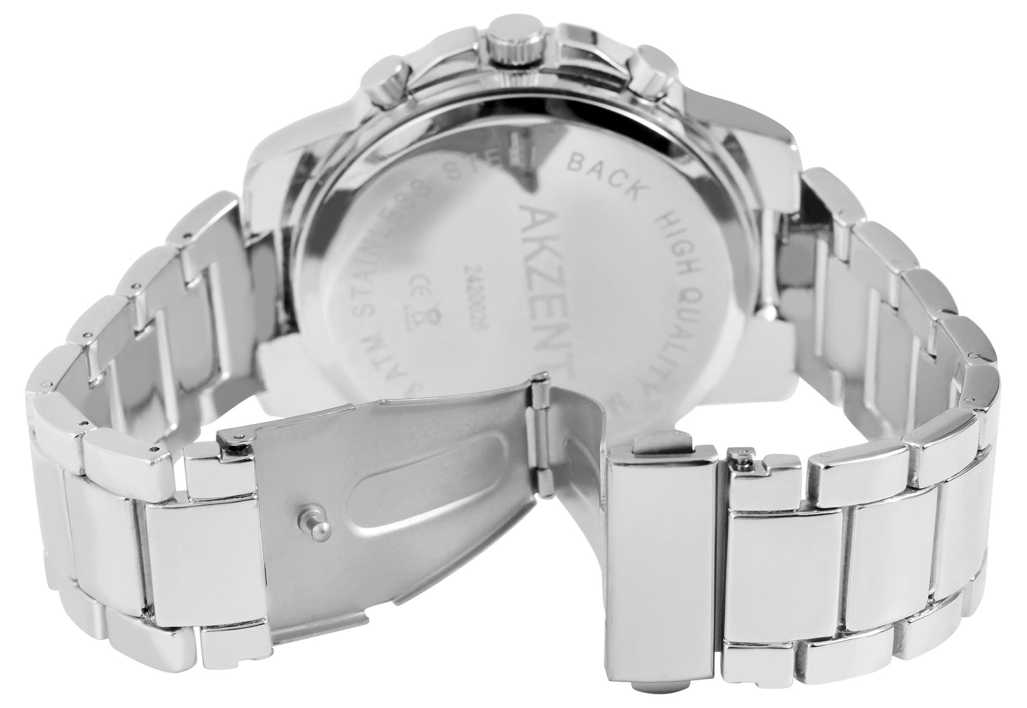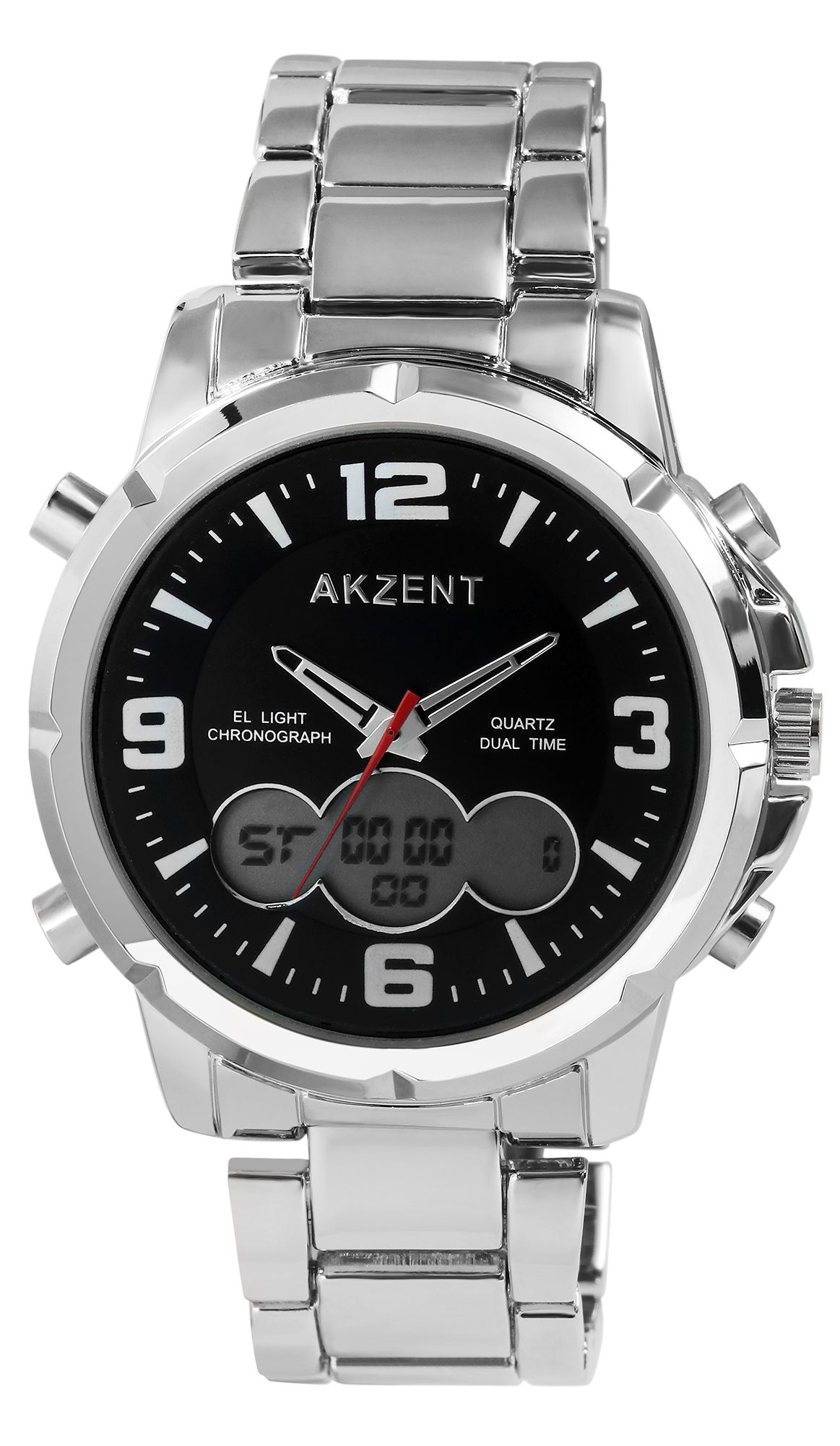 Productinformatie "Akzent Analog/Digital Herrenuhr mit Edelstahlarmband, silberfarben/schwarz"