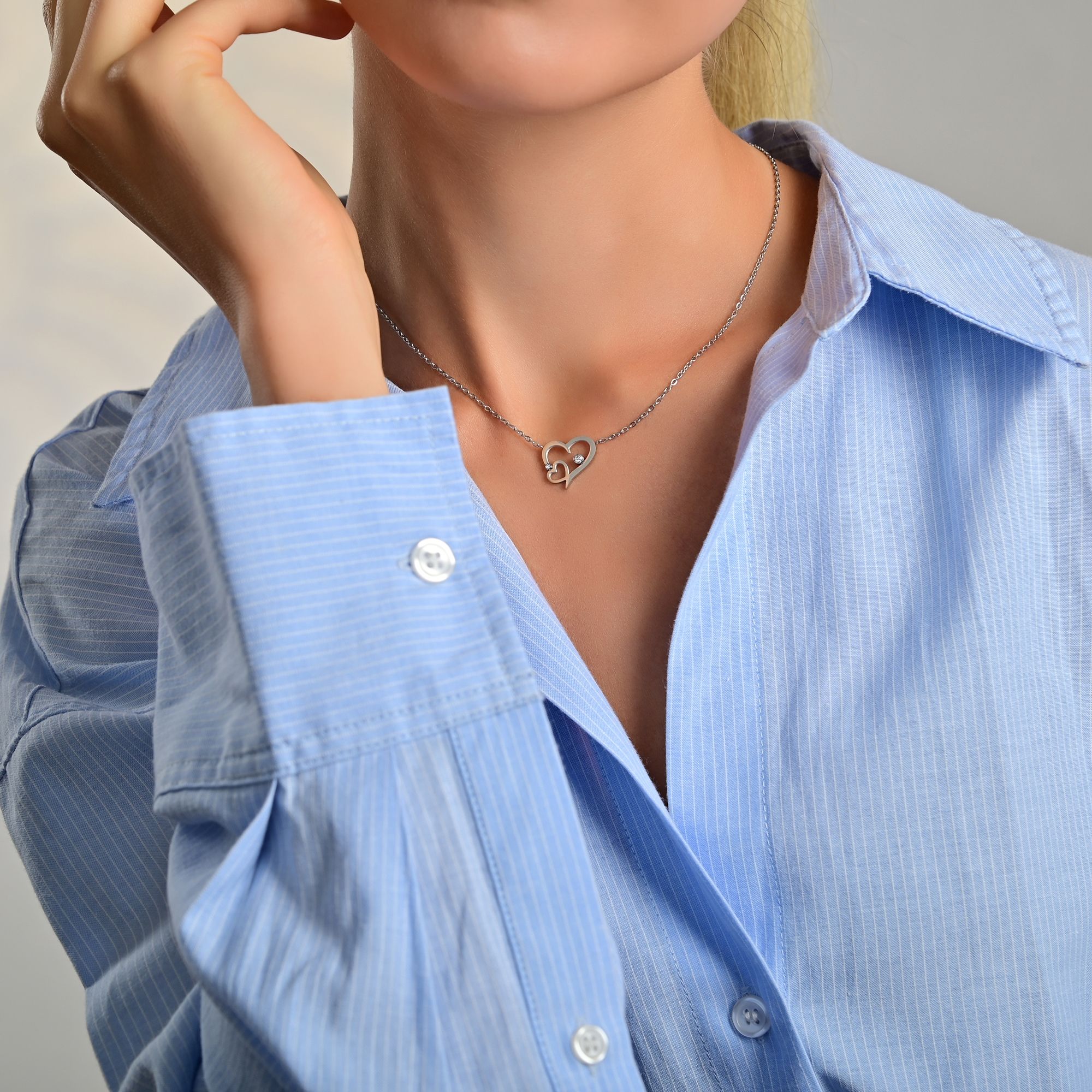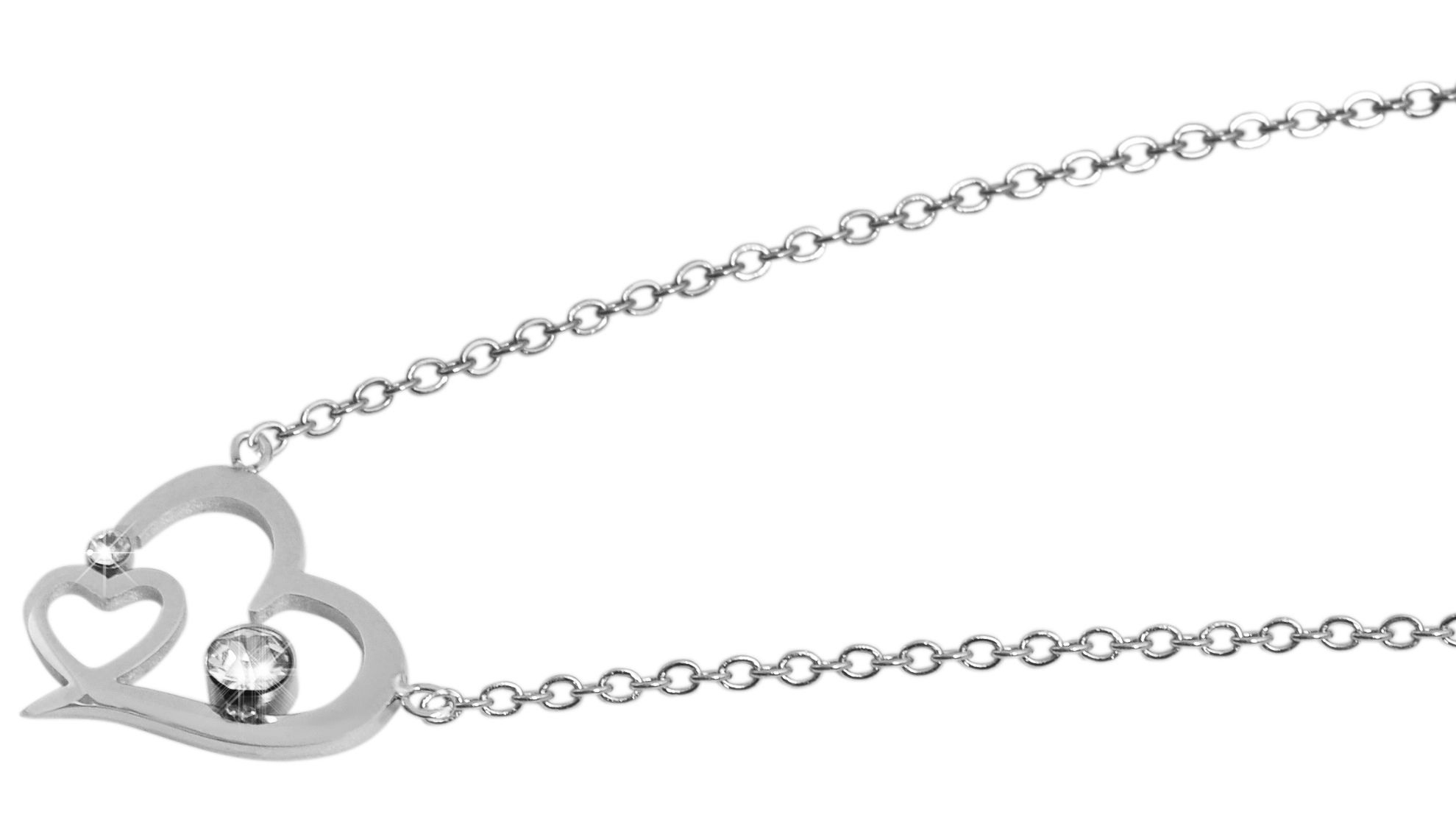 De ketting van het merk Akzent is gemaakt van roestvrij staal in een ankerpatroon. Aan de ketting is een hartvormige hanger bevestigd. Deze is versierd met twee similistenen. De moderne sieradenketting kan worden geopend en gesloten met een karabijnsluiting, die ook van roestvrij staal is gemaakt. Aan één uiteinde van de ketting is ook een verlengkettinkje van 5 cm bevestigd, waarmee de lengte met maximaal 5 cm kan worden aangepast aan elke outfit. De afmetingen komen voort uit een lengte van 43 cm en een dikte van 1,5 mm. De hanger heeft een lengte van 15 mm, een breedte van 16 mm en een dikte van 1,5 mm.