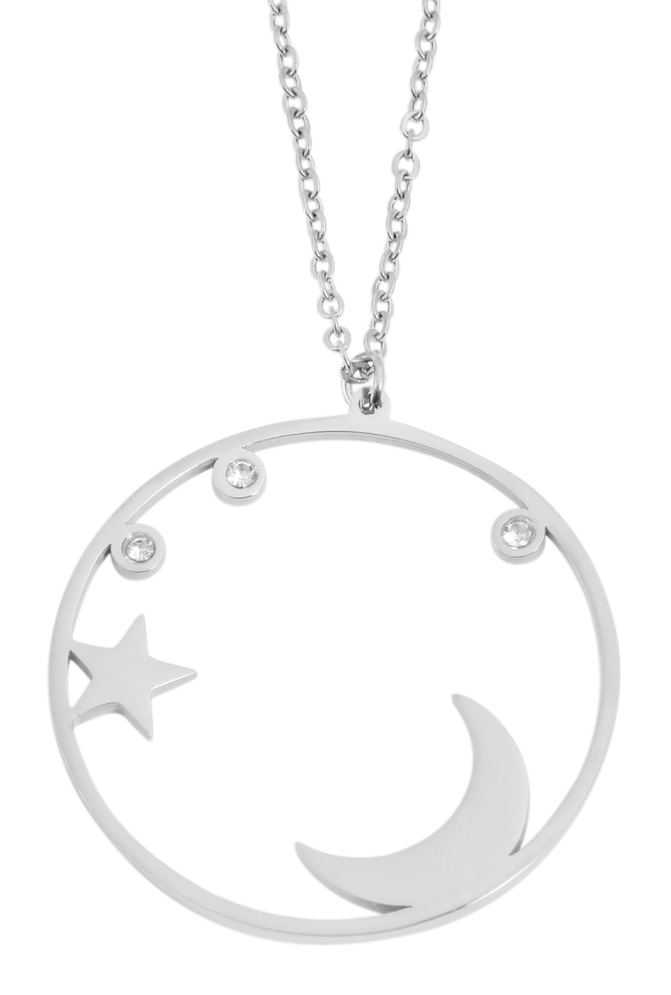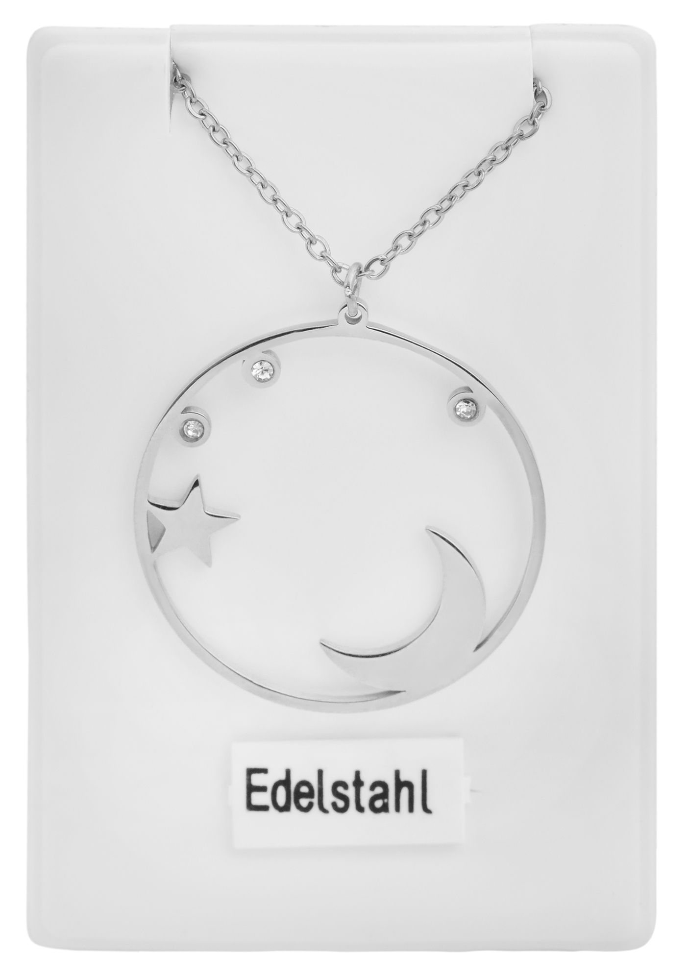 Productinformatie "Akzent Ankerkette aus Edelstahl, runder Anhänger mit Mond & Sternen"