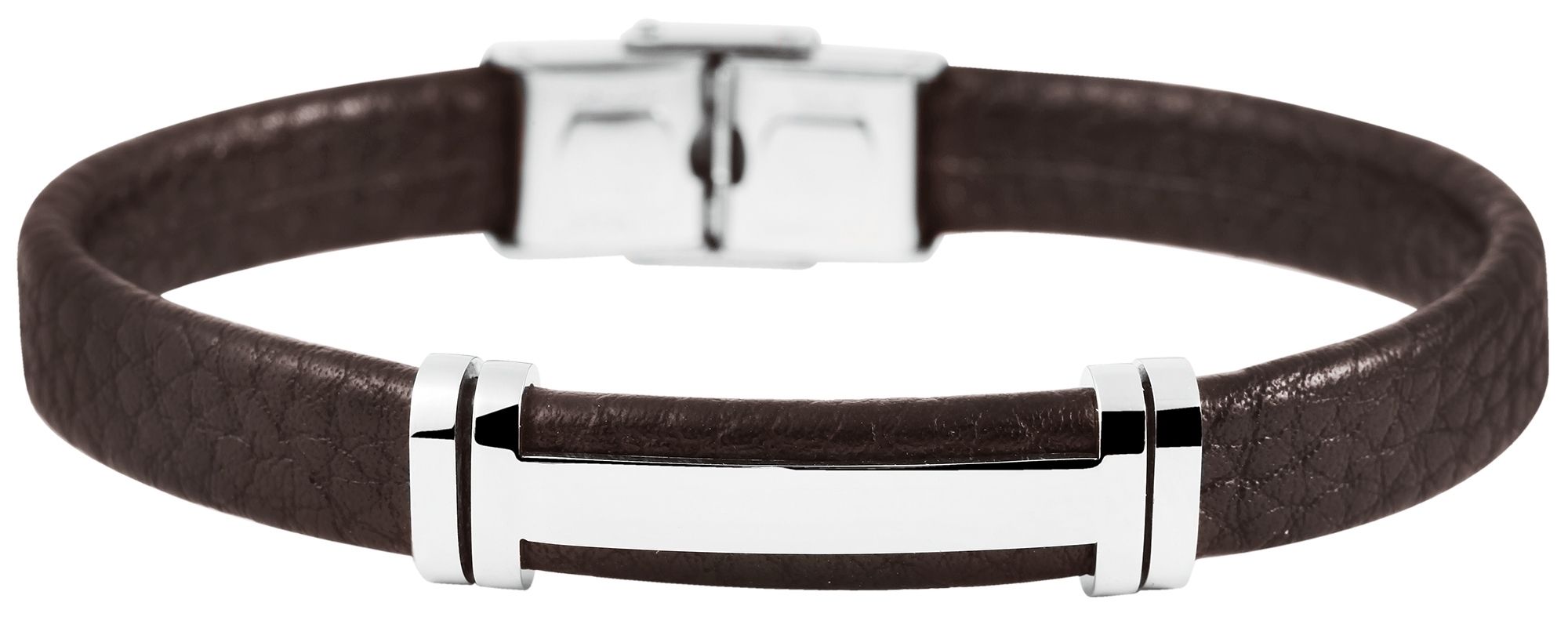 Productinformatie "Akzent Armband aus Echtleder, Edelstahl-Gravurplatte, braun"