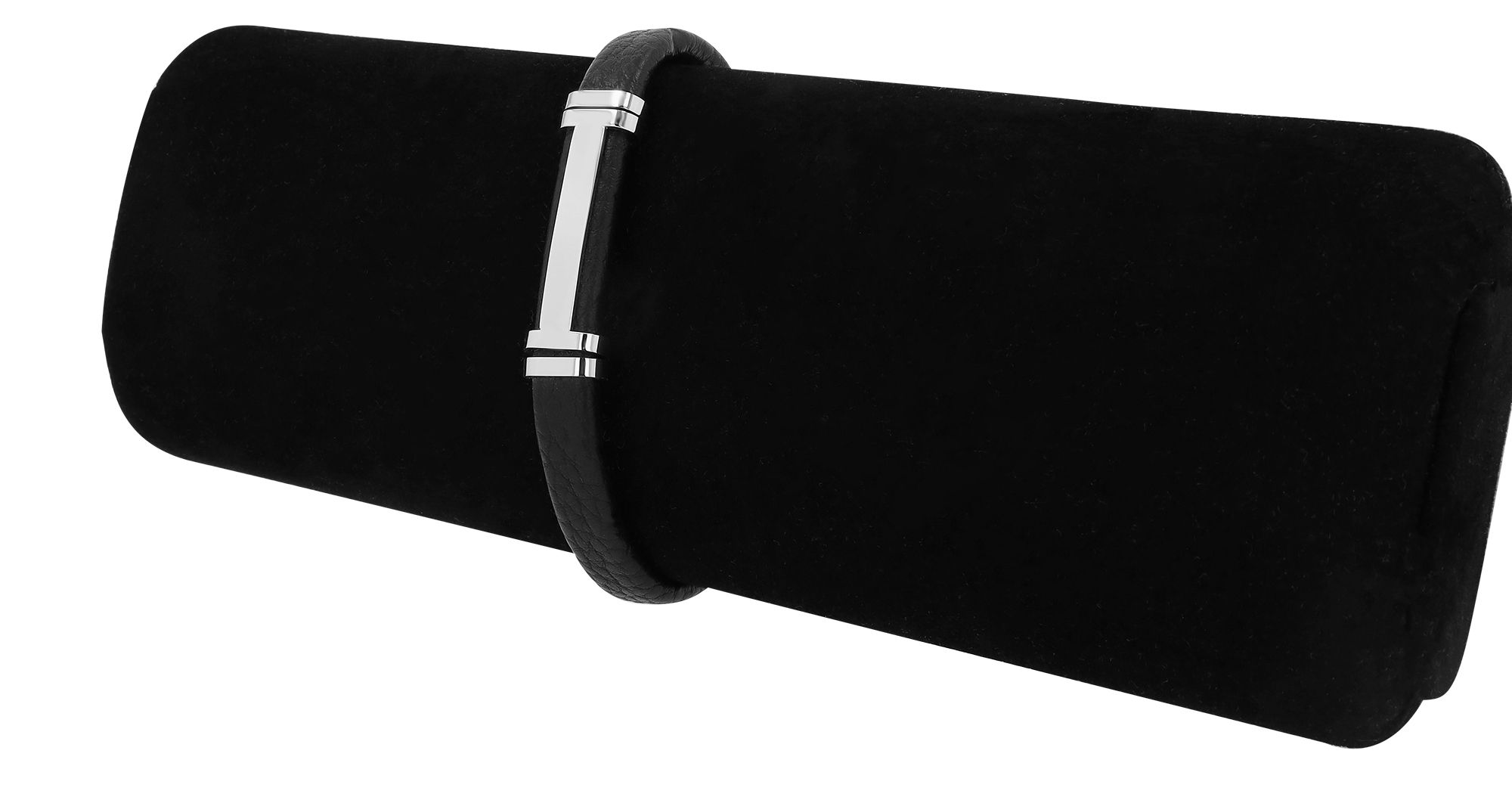 Productinformatie "Akzent Armband aus Echtleder, Edelstahl-Gravurplatte, schwarz"