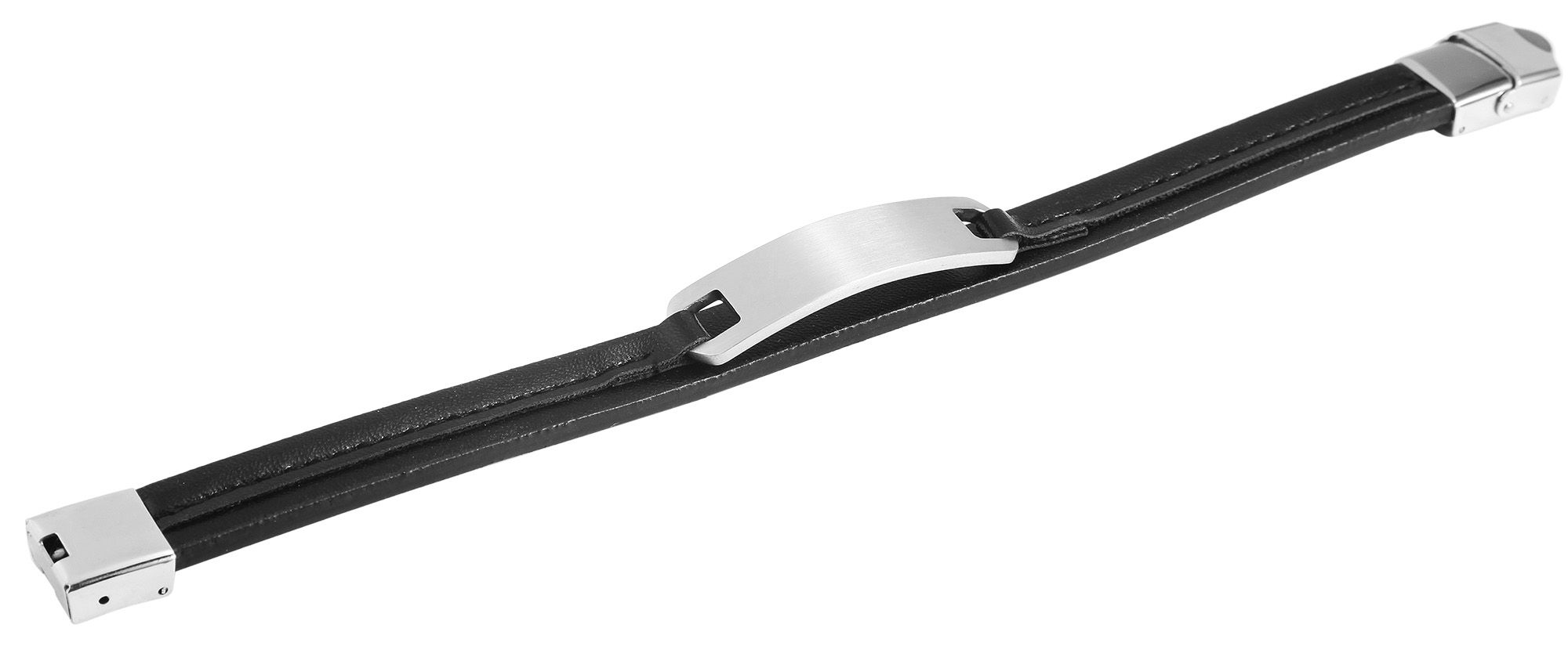 Productinformatie "Akzent Armband aus Echtleder und Edelstahl, schwarz/silberfarben"