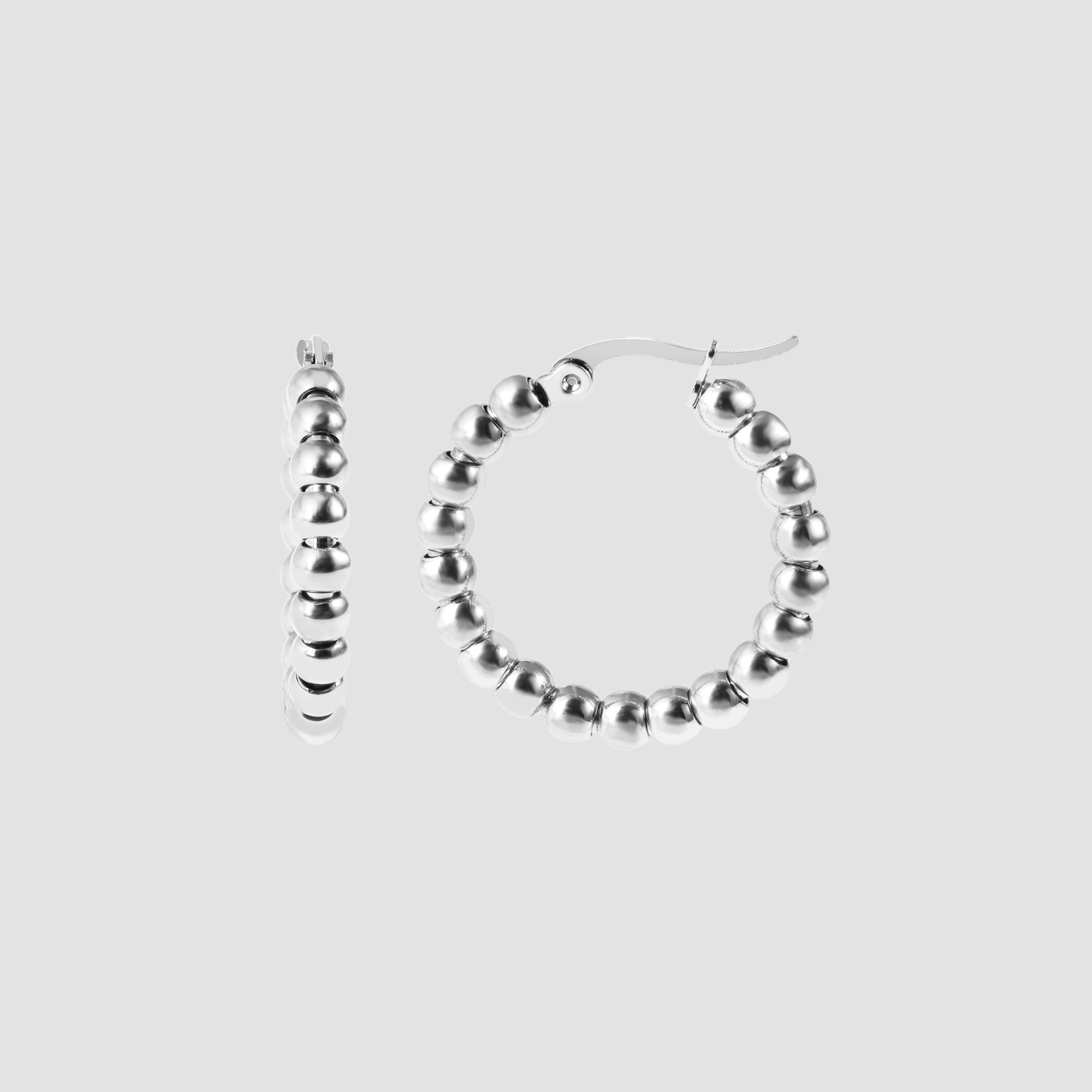 Productinformatie "Akzent Creolen, Edelstahl, Kugel-Design, silberfarben"