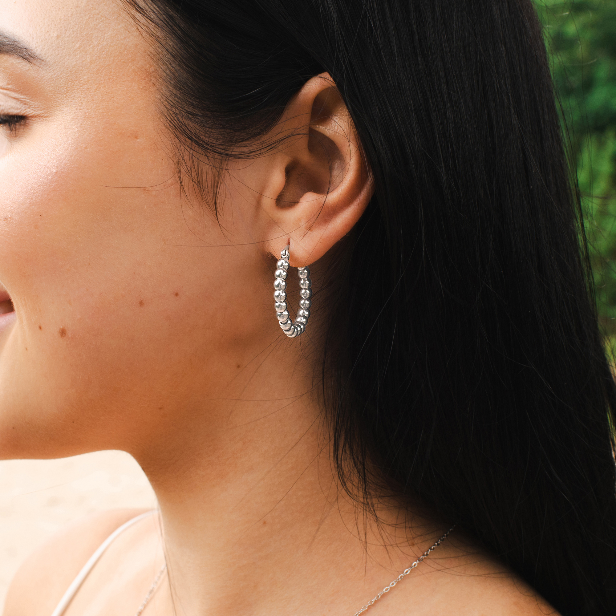 De vrouwelijke hoepeloorbellen van het merk Akzent zijn gemaakt van roestvrij staal en zijn verkrijgbaar in verschillende kleuren. Ze hebben een trendy bolvormig ontwerp en maken indruk met hun glanzende en speelse look. De kleine bolletjes zijn als pareltjes aan elkaar geregen tot een mooi gevormde hoepeloorbel. Ze worden gesloten met een praktische sluiting die voorkomt dat de oorbellen uitvallen. De maat resulteert uit een diameter van 20 mm, een breedte van 4 mm en een dikte van 4 mm.