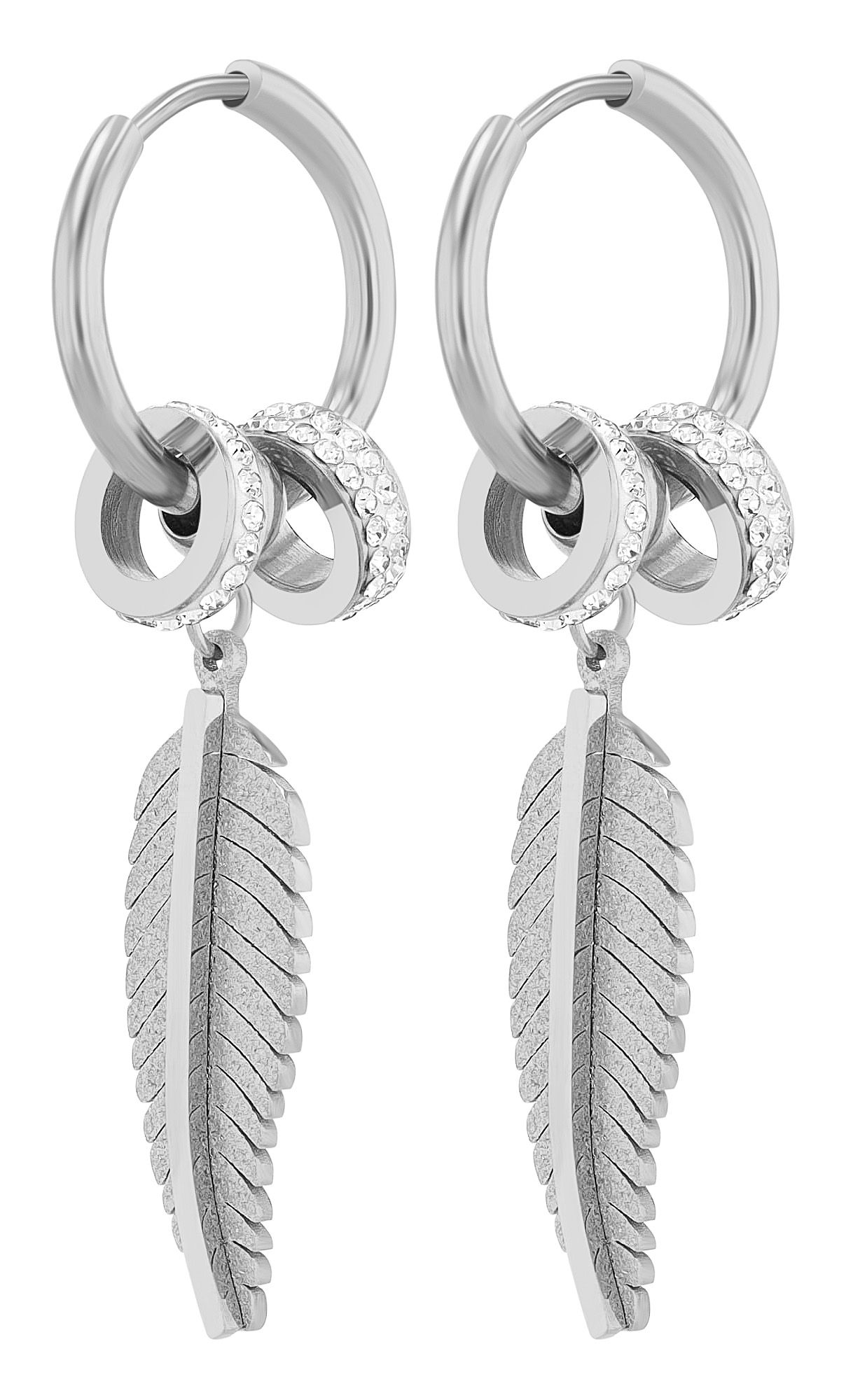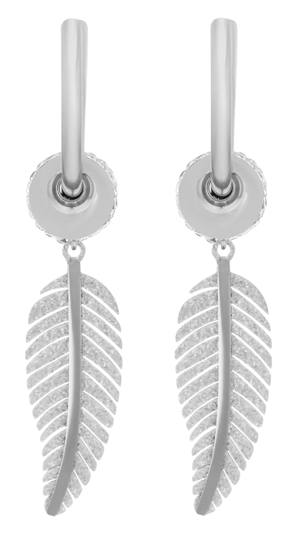 Elke creool heeft een veervormige hanger en twee ronde elementen met glinsterende randen. Deze elementen zijn beweegbaar en kunnen worden verwisseld of verwijderd afhankelijk van je stemming of outfit, zodat je looks op maat kunt creëren.