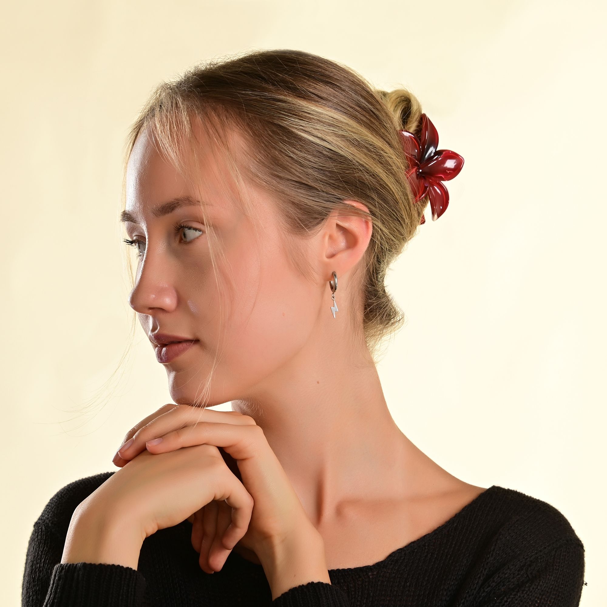 De Akzent hoepeloorbellen zijn gemaakt van roestvrij staal en zijn verkrijgbaar in zilver- of goudkleur. Ze hebben een diameter van 10 mm en een breedte en materiaaldikte van 2,5 mm. De sluiting is een praktische scharniersluiting die zorgt voor een stevige grip op het oorgat en gemakkelijk aan- en uittrekken garandeert. Een hanger in de vorm van een bliksemschicht is bevestigd aan een oogje op de oorbellen. Deze slingert elegant mee met elke beweging en geeft elke outfit een moderne charme. De hangers zijn ook gemaakt van roestvrij staal en passen bij het algemene kleurenschema. De filigraan bliksemschichten zijn 14 mm lang, 4 mm breed en 1 mm dik. Deze oorbellen zijn een must-have in elk juwelendoosje. Ze worden geleverd op een wit juwelenkaartje. De afmetingen zijn 35 x 55 mm en ideaal om te presenteren in een passende display of om cadeau te geven.