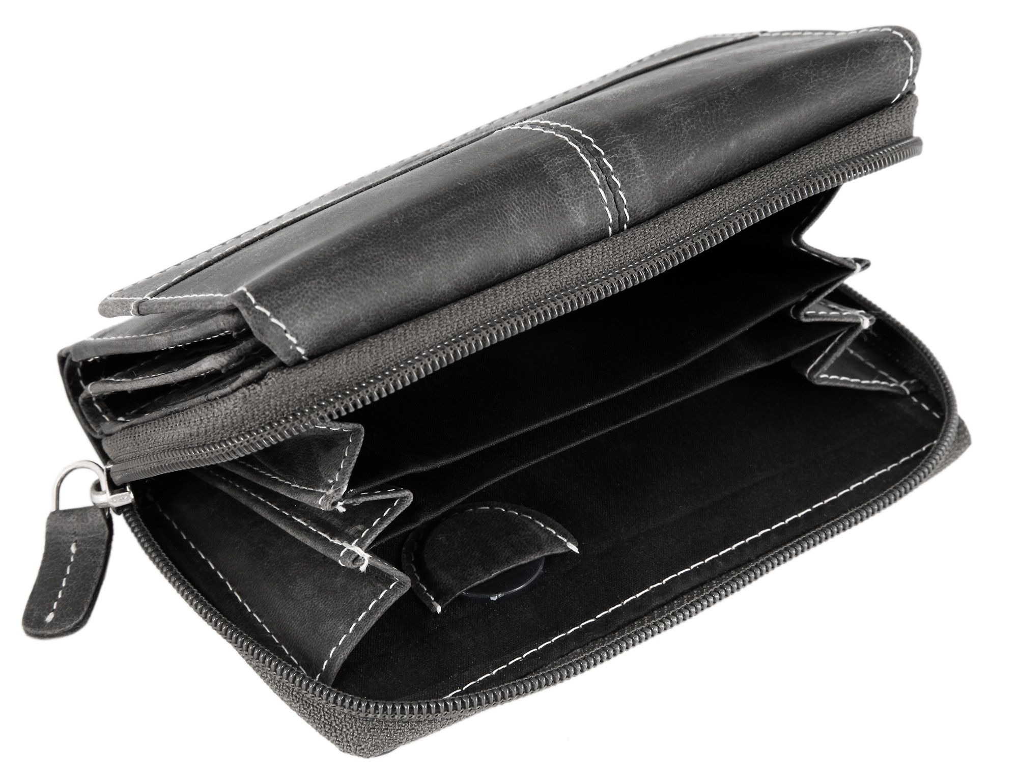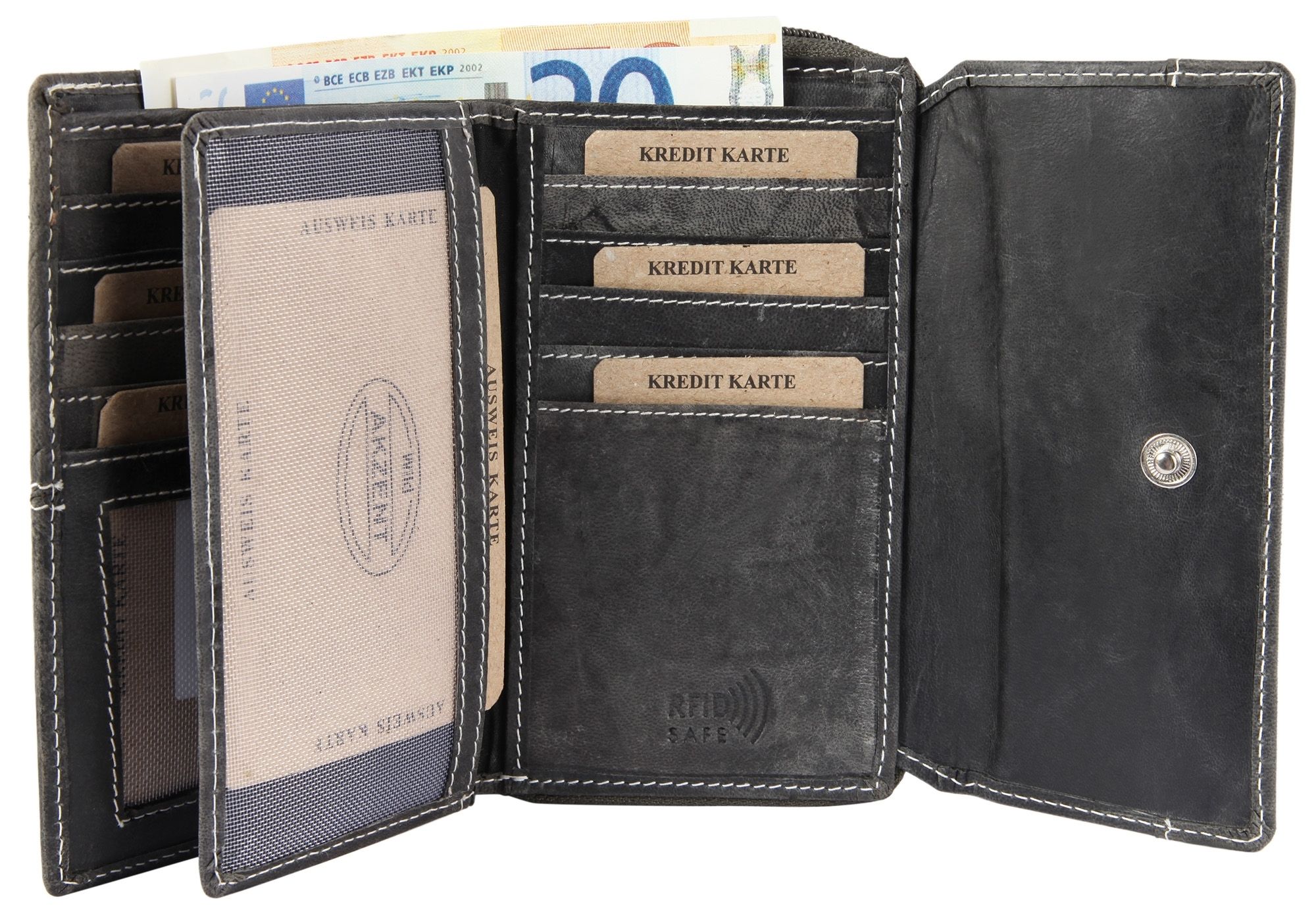 Productinformatie "Akzent Damen Geldbörse aus Echtleder. Format 15 x 10 cm. RFID - grau"