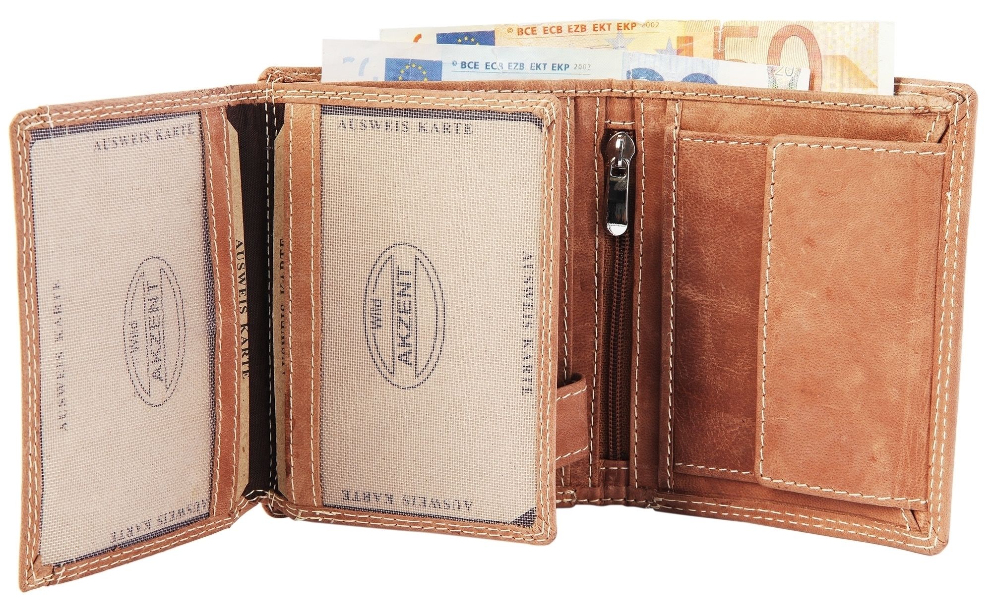 Productinformatie "Akzent Echt Leder Geldbörse, hellbraun"
