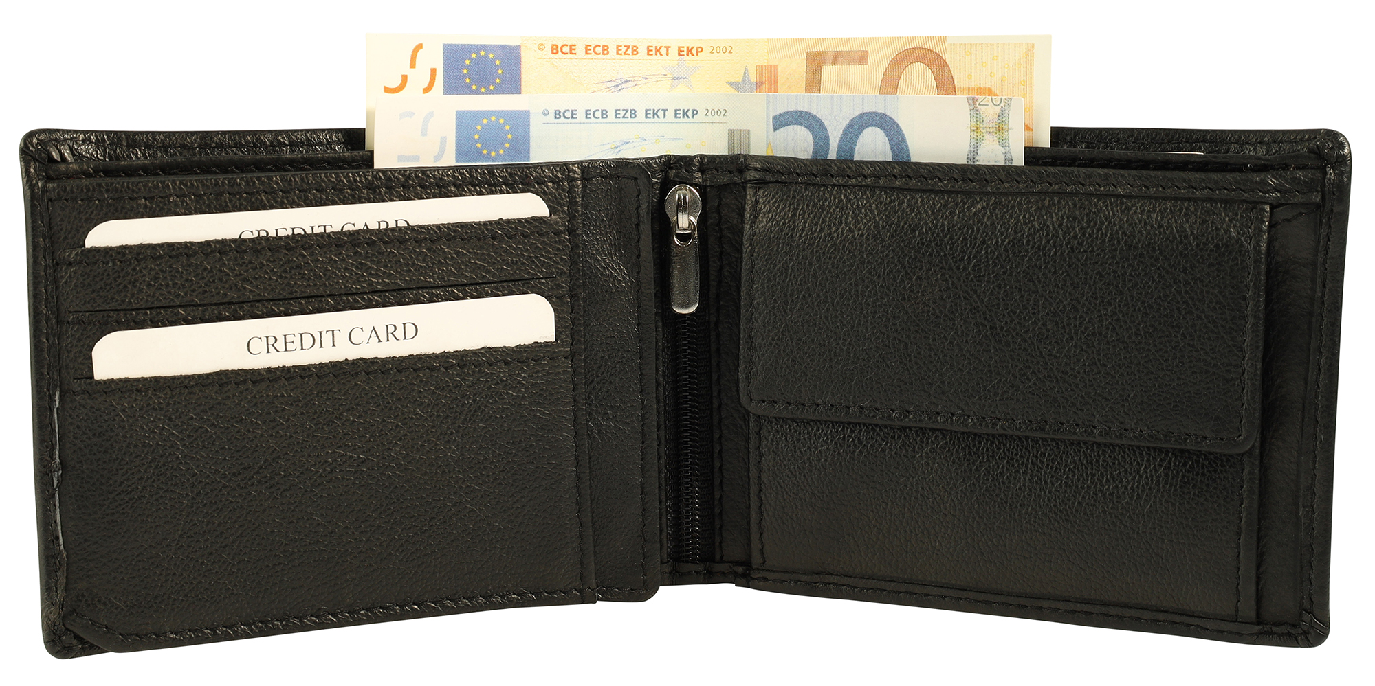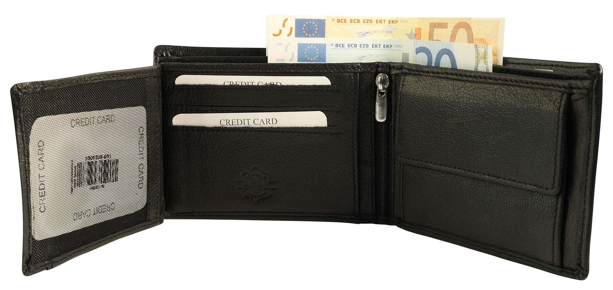 De Akzent portemonnee is gemaakt van echt rundleer in liggend formaat en heeft een eenvoudig ontwerp. De portemonnee is een echte ruimtebespaarder en biedt veel opbergruimte voor al je belangrijke documenten. Toch heeft hij een praktisch formaat dat in elke broekzak past. De portemonnee is verdeeld in 6 creditcardvakken, 2 biljetvakken, 1 muntvak met drukknoopsluiting, 1 ritsvak aan de binnenkant, 2 insteekvakken en 1 transparant ID-kaartvak. De ongevulde maat is 9 cm lang, 12,5 cm breed en 2 cm dik. Een geweldig accessoire voor mannen en ideaal als cadeau.