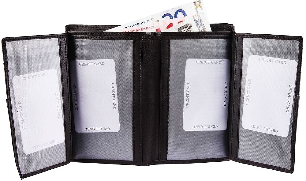 Deze portemonnee van het merk Akzent is gemaakt van echt leer in staand formaat. De moderne portemonnee is verdeeld in twee delen. Eén deel kan worden geopend met een klassieke drukknoop. Hierdoor kan de portemonnee worden geopend als een boek. Er komen tien vakken tevoorschijn, die aan twee kanten verdeeld zijn en gevuld kunnen worden met een grote verscheidenheid aan pasjes. De twee onderste vakken zijn zichtbaar door een transparant net. De twee zijkanten kunnen ook weer van binnen naar buiten worden geopend. Daarachter bevinden zich nog eens vier grote vakken die zich uitstrekken over de hele hoogte van de portemonnee en ook volledig zichtbaar zijn door een transparant net. Achter de kaartvakken zitten twee diepe vakken voor bankbiljetten, die veilig opgeborgen kunnen worden. Het tweede deel van de portemonnee kan worden geopend met een rits. Deze strekt zich uit over twee van de drie zijkanten van de portemonnee en verbergt twee grote muntvakken, die worden gescheiden door nog een smal ritsvak. De moderne portemonnee biedt veel ruimte voor contant geld en veel pasjes, ID's en waardevolle spullen. De afmetingen zijn 16 cm lang, 10 cm breed en 3 cm hoog.