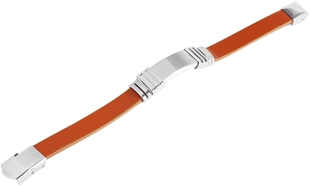 De bruine echt lederen band van het merk Akzent bestaat uit een 10 mm brede, gladde lederen band met een dikte van 3 mm. In het midden is een zilverkleurig roestvrijstalen element verwerkt, dat ideaal is om te graveren. Dit heeft een glanzend uiterlijk, een lengte van 41 mm, een breedte van 14 mm en een materiaaldikte van 4,5 mm. Verdere stalen elementen zijn bevestigd aan de uiteinden en elk is omrand met twee roestvrijstalen oogjes. De moderne armband kan worden geopend en gesloten met een zilverkleurige haaksluiting, die ook van roestvrij staal is gemaakt. De totale lengte van de armband is 21,5 cm. Een gepersonaliseerd sieraad is een uitstekend cadeau.