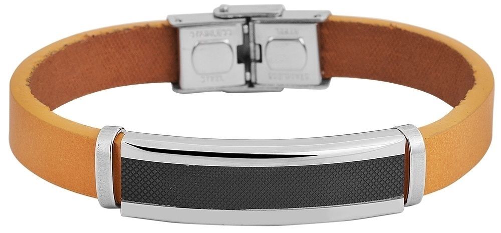 Productinformatie "Akzent Echtlederarmband mit Edelstahlelement, hellbraun/silberfarben"