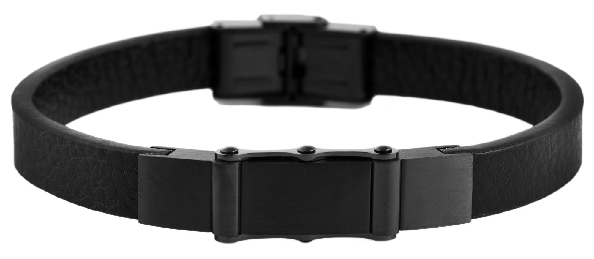Productinformatie "Akzent Echtlederarmband mit Edelstahlelement, schwarz/schwarz"