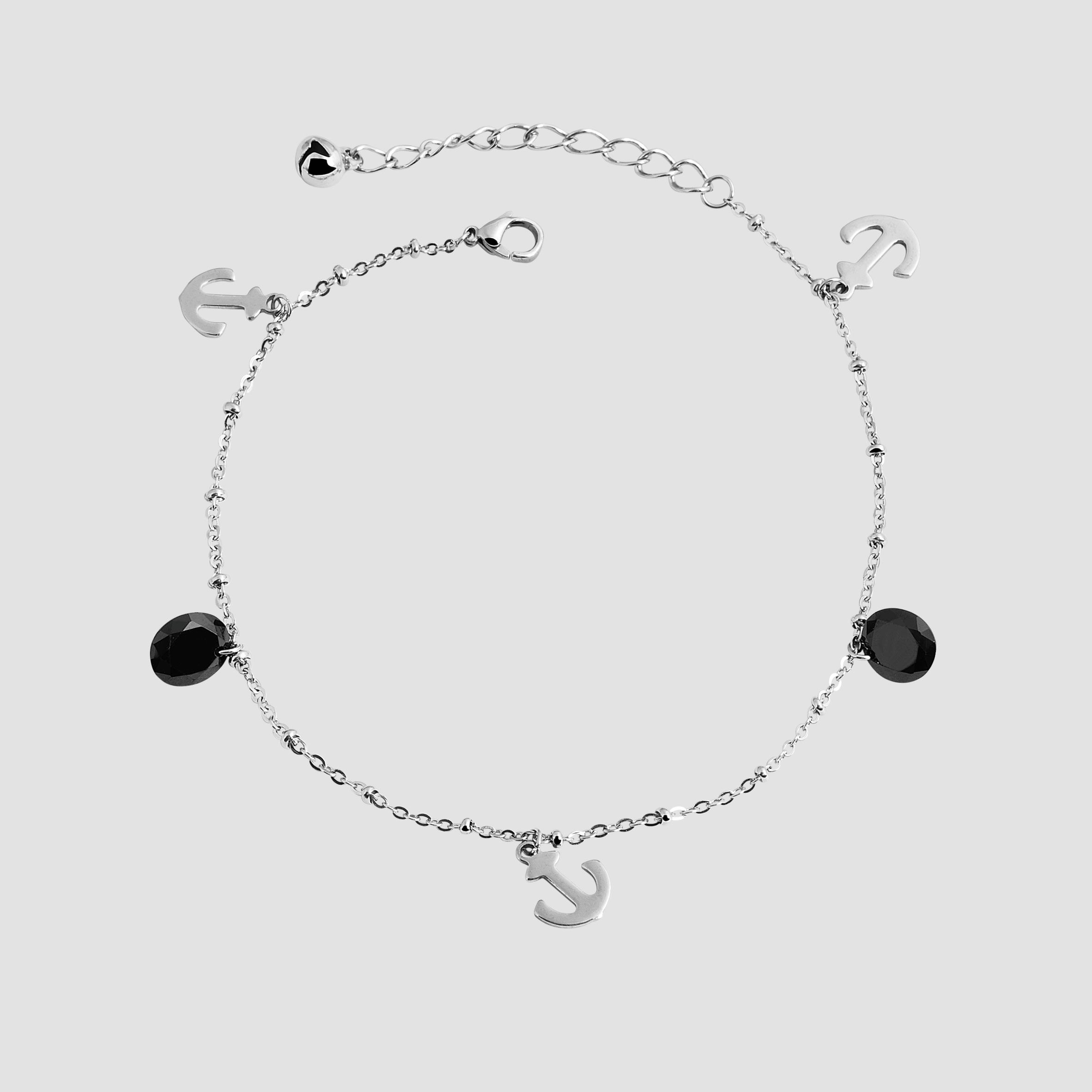 De enkelband van het merk Akzent bestaat uit een ankerketting met drie hangers in de vorm van een anker. Er zijn ook 2 zwarte stenen hangers aan de enkelband bevestigd. De enkelband kan worden geopend en gesloten met een karabijnsluiting, die ook van roestvrij staal is. De lengte kan worden aangepast dankzij het verlengstuk van 5 cm. De afmetingen resulteren in een totale lengte van 27,5 cm en een kettingdikte van 1 mm. De hangers hebben een lengte van 1,2 cm en een breedte van 3 mm. De ronde hangers hebben een diameter van 8 mm.