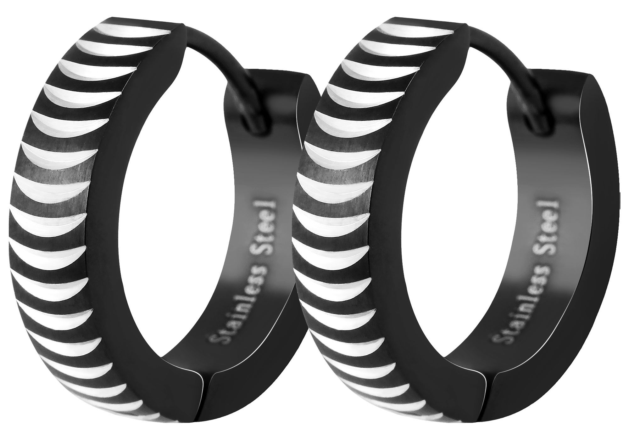 Productinformatie "Akzent Edelstahl Klapp-Creolen, Ionenplattiert, silberfarben und schwarz"