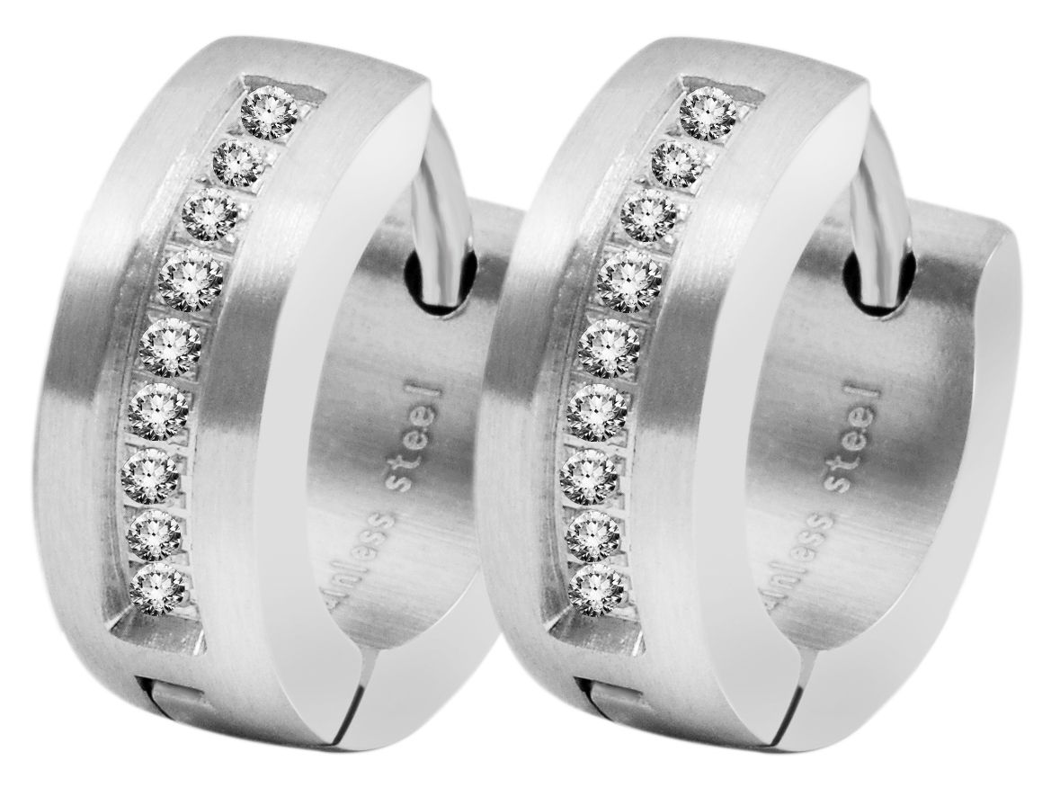Productinformatie "Akzent Edelstahl Klapp-Creolen, Simili besetzt, silberfarbig"