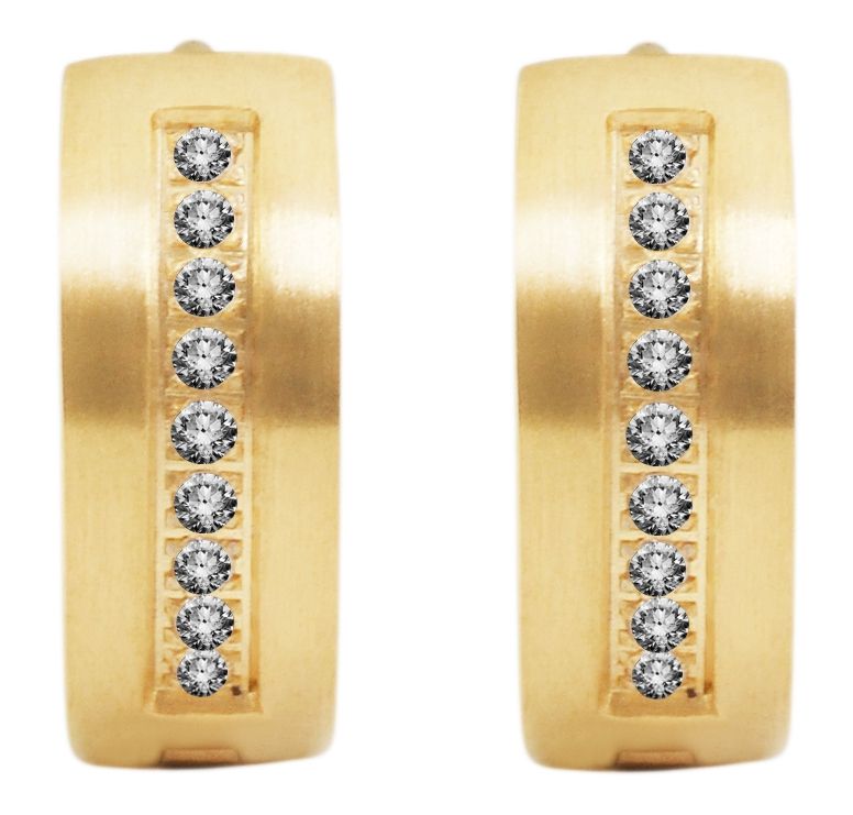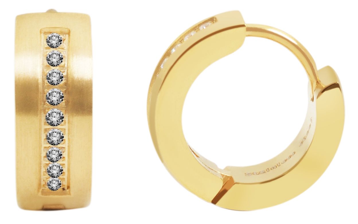Productinformatie "Akzent Edelstahl Klapp-Creolen mit IP Beschichtung, Simili besetzt, goldfarbig"