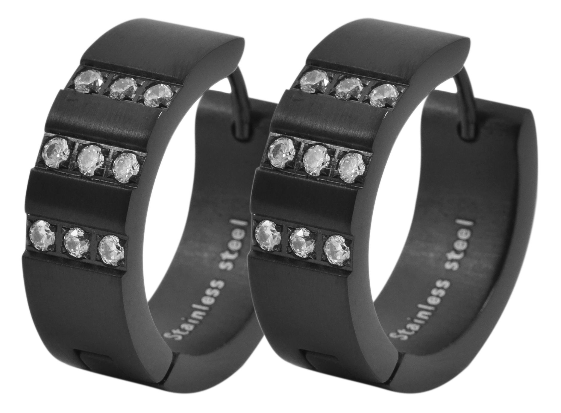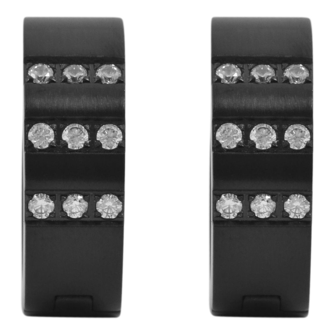 Productinformatie "Akzent Edelstahl Klapp-Creolen mit IP Beschichtung, Simili besetzt, schwarz, matt"