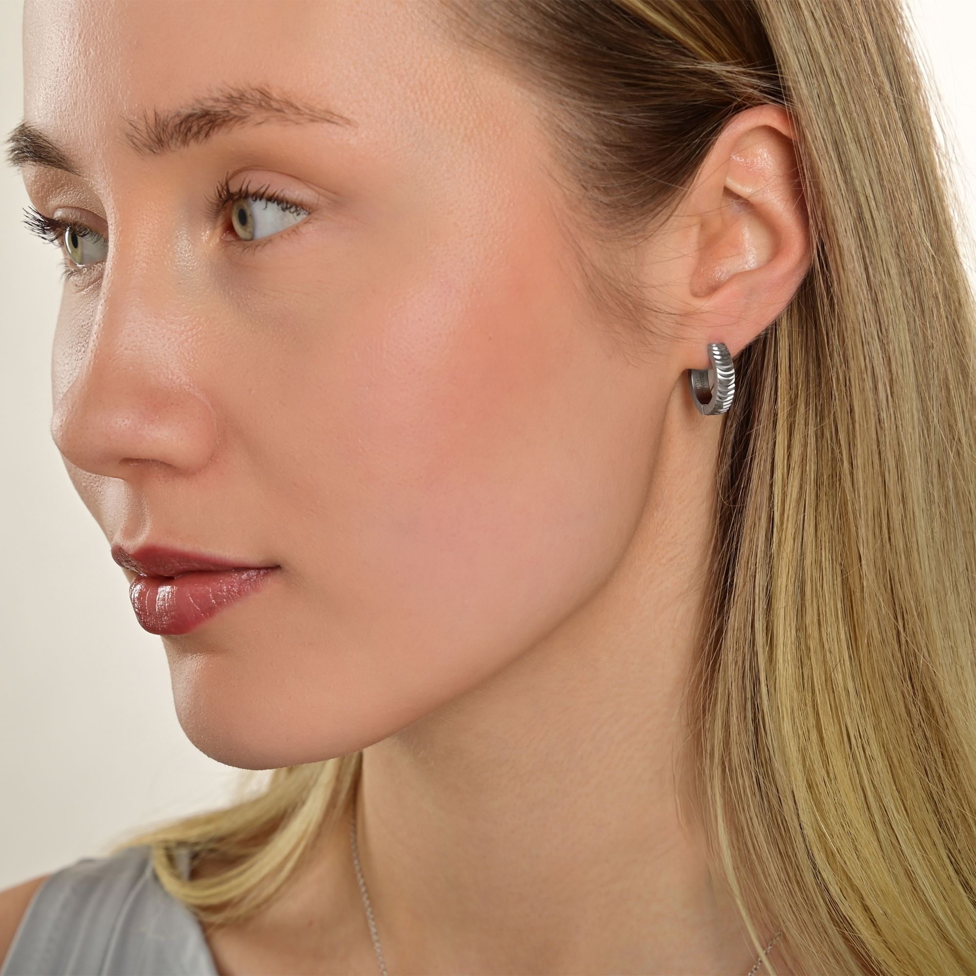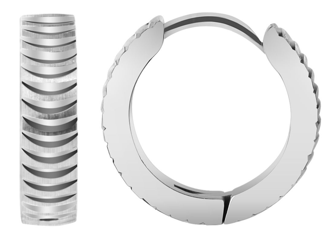 De scharnierende hoepeloorbellen van het merk Akzent zijn gemaakt van roestvrij staal. De diameter van de oorbellen is 12 mm. Ze hebben een breedte van 4 mm en zijn versierd met kleine inkepingen over het hele oppervlak. Deze zijn zilverkleurig, glanzend en vallen mooi op. Ze maken deze oorsieraden speciaal en maken ze een geschikt accessoire voor elke gelegenheid. Ze kunnen gecombineerd worden met elke kledingstijl en zijn altijd een stijlvolle metgezel. Ze zijn ook een uitstekend cadeau. Bijvoorbeeld voor een verjaardag, Valentijnsdag of Kerstmis. Dit product wordt geleverd op een witte juwelenkaart. De afmetingen zijn 38 x 55 mm en ideaal om te presenteren in een passende display of om in te pakken als cadeau.