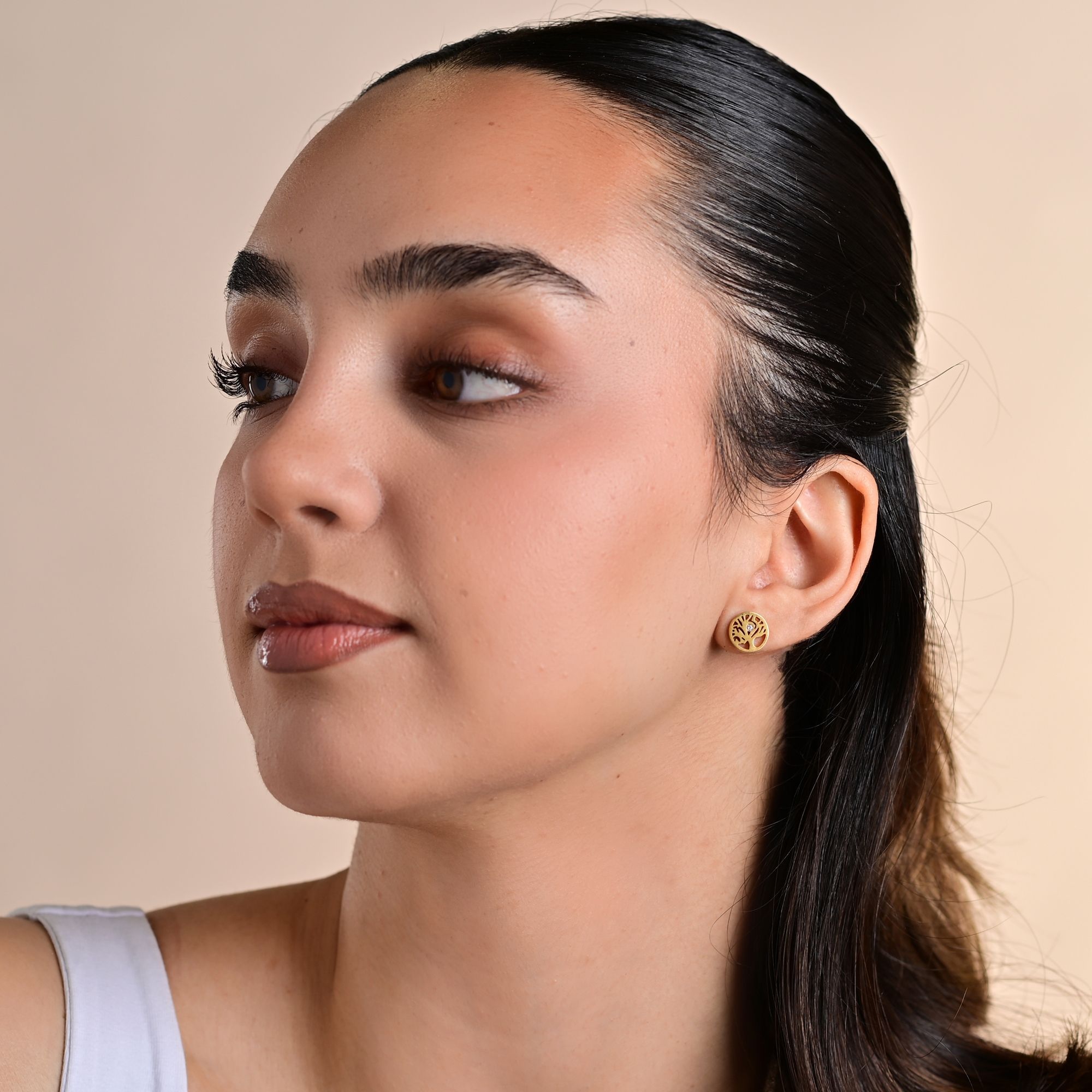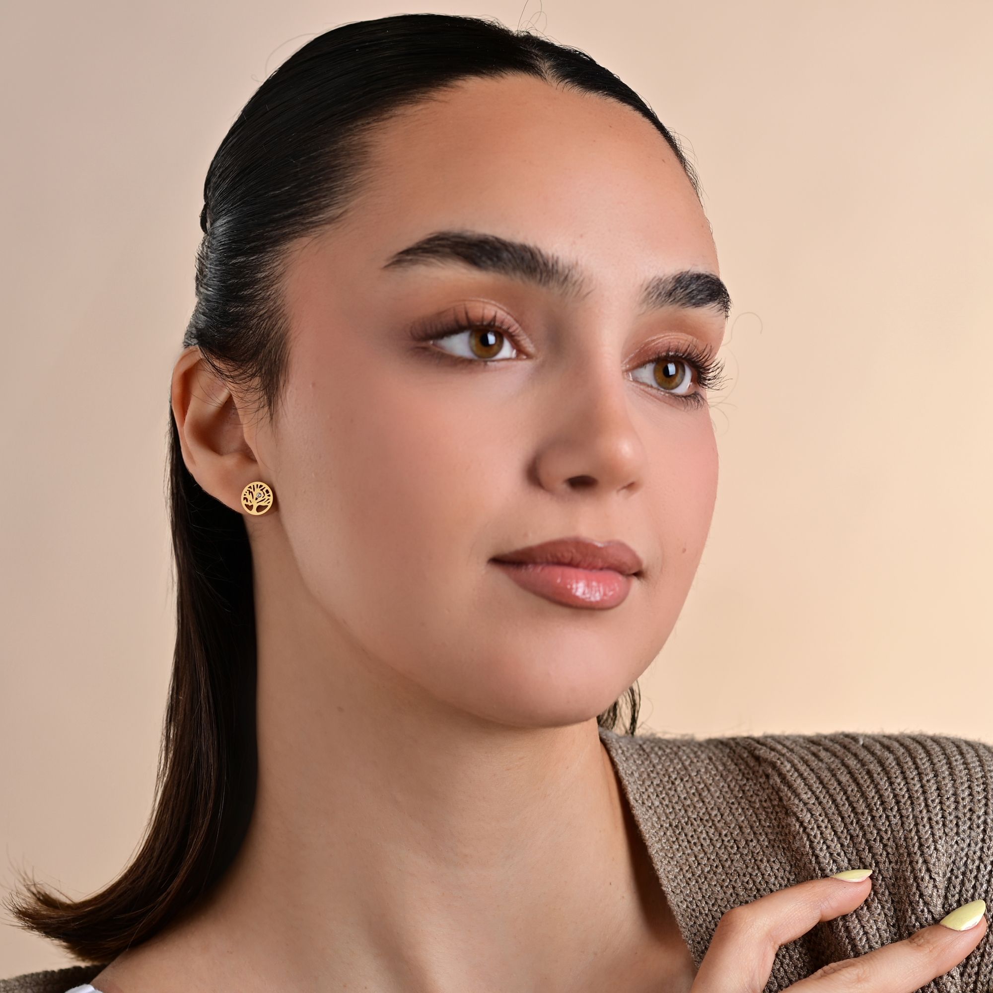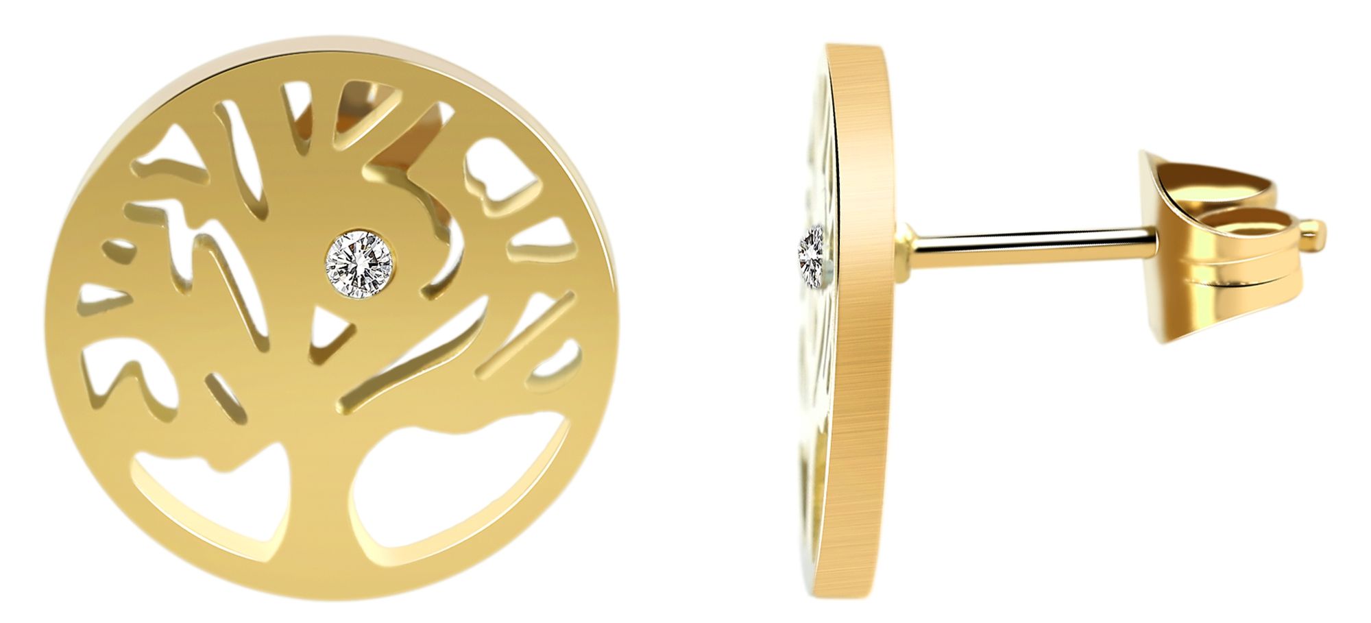 Productinformatie "Akzent Edelstahl Ohrstecker, Lebensbaum mit Similibesatz, Ionenplattiert, goldfarben"