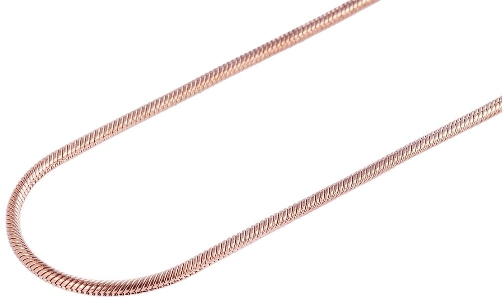 De slangenketting van het merk Akzent is gemaakt van roestvrij staal, is roségoudkleurig en ook IP-plated. De elementen van de slangenketting zijn allemaal op dezelfde manier gevormd en lopen vloeiend in elkaar over, zodat een kettingpatroon op het eerste gezicht nauwelijks te herkennen is. Niet alleen het uiterlijk, maar ook de soepelheid van de ketting doet denken aan een slang. Slangenkettingen zijn comfortabel om te dragen en zijn ook ideaal voor hangers. De ketting wordt aan de achterkant van de hals vastgemaakt met een roestvrijstalen karabijnsluiting. De ketting is 60 cm lang en kan indien nodig met 5 cm worden verlengd, waardoor hij individueel verstelbaar is. De dikte van de ketting is 2 mm.