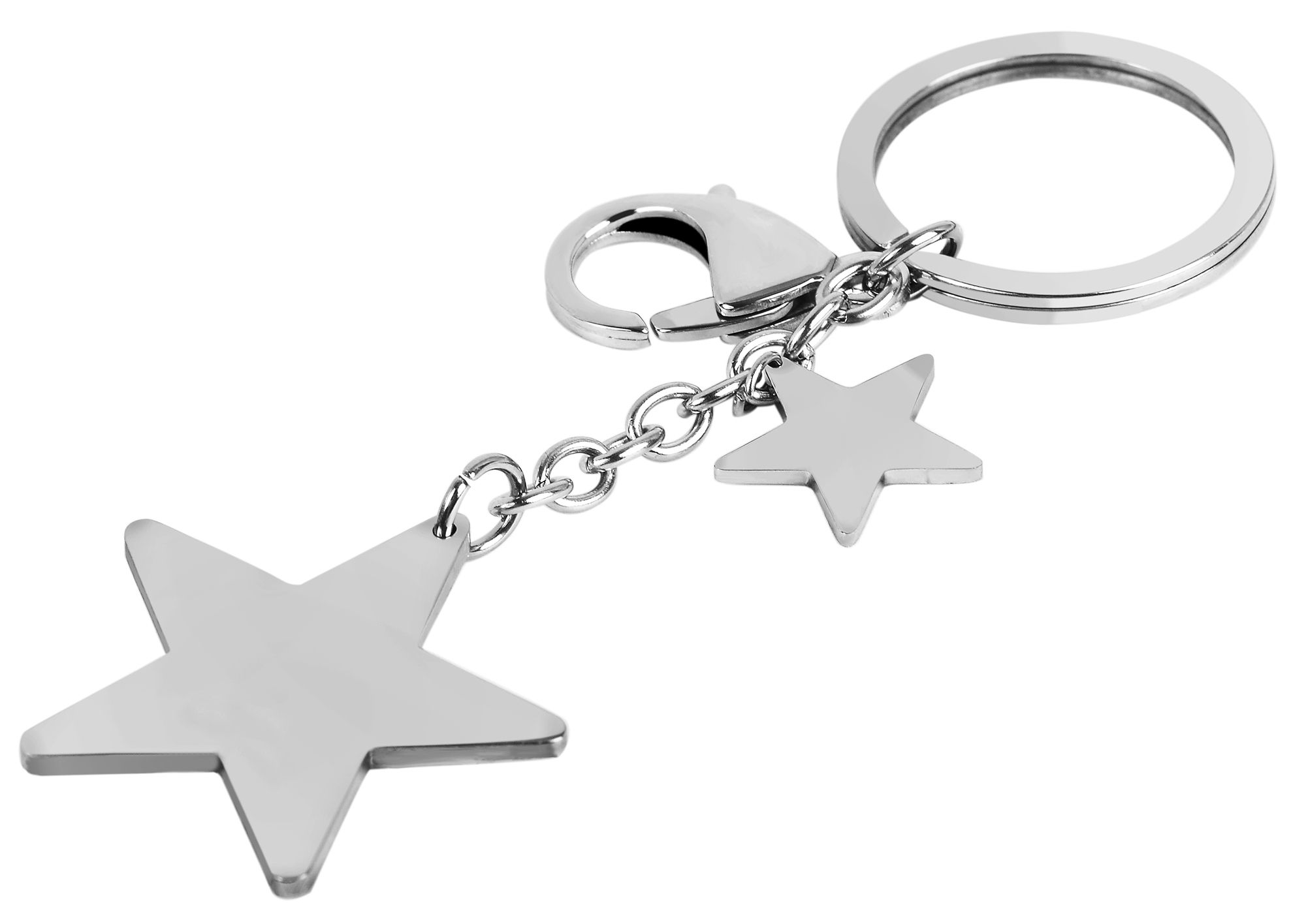De zilverkleurige sleutelhanger van het merk Akzent is hoogglans gepolijst en gemaakt van roestvrij staal. Hij is perfect als gepersonaliseerd cadeau, want de hanger is een hoogglans ster die aan beide zijden gegraveerd kan worden en is 33 mm lang, 33 mm breed en 2 mm dik. De hanger wordt aan de sleutelhanger bevestigd met een 45 mm lange ronde ankerketting. Deze heeft een diameter van 30 mm en is ook gemaakt van roestvrij staal en zeer robuust. Dezelfde hanger is ook bevestigd aan de ketting, maar deze is 17 mm lang en 1,5 mm dik. Hij is ook gemaakt van roestvrij staal, hoogglans gepolijst, zilverkleurig en kan aan beide zijden worden gegraveerd.