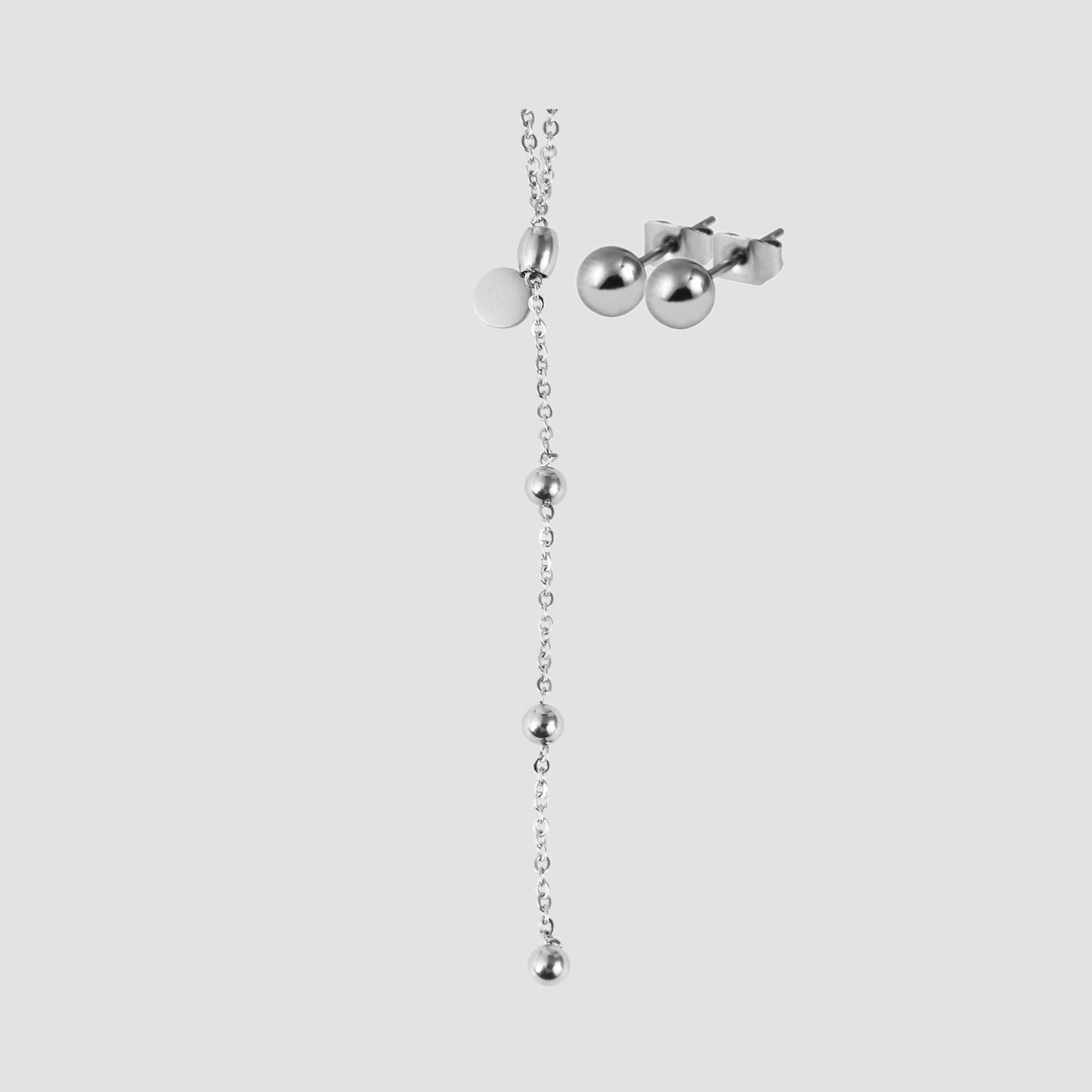 De zilverkleurige sieradenset van het merk Akzent is gemaakt van roestvrij staal en bestaat uit oorstekers en een ketting. De ankerketting is 43 cm lang, 1 mm breed en 1 mm dik. Aan het uiteinde van de ketting is ook een verlengkettinkje van 5 cm bevestigd, zodat je de lengte met maximaal 5 cm kunt variëren en de ketting aan elke outfit kunt aanpassen. De ketting kan worden geopend en gesloten met een stevige roestvrijstalen karabijnhaak. De 8 cm lange hanger van de ankerketting bestaat uit een ketting die op regelmatige afstanden is versierd met hoogglans gepolijste roestvrijstalen bolletjes. De hanger is 5 mm breed en 4 mm dik. De bijpassende oorstekers, die ook van roestvrij staal zijn, zijn hoogglans gepolijst en hebben de vorm van een bol. De oorstekers hebben een diameter van 5 mm en zijn 4 mm dik. De comfort oorknopjes, die worden geleverd met een siliconen plaatje, geven extra steun aan de oorbellen.
