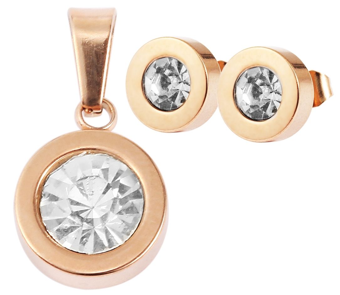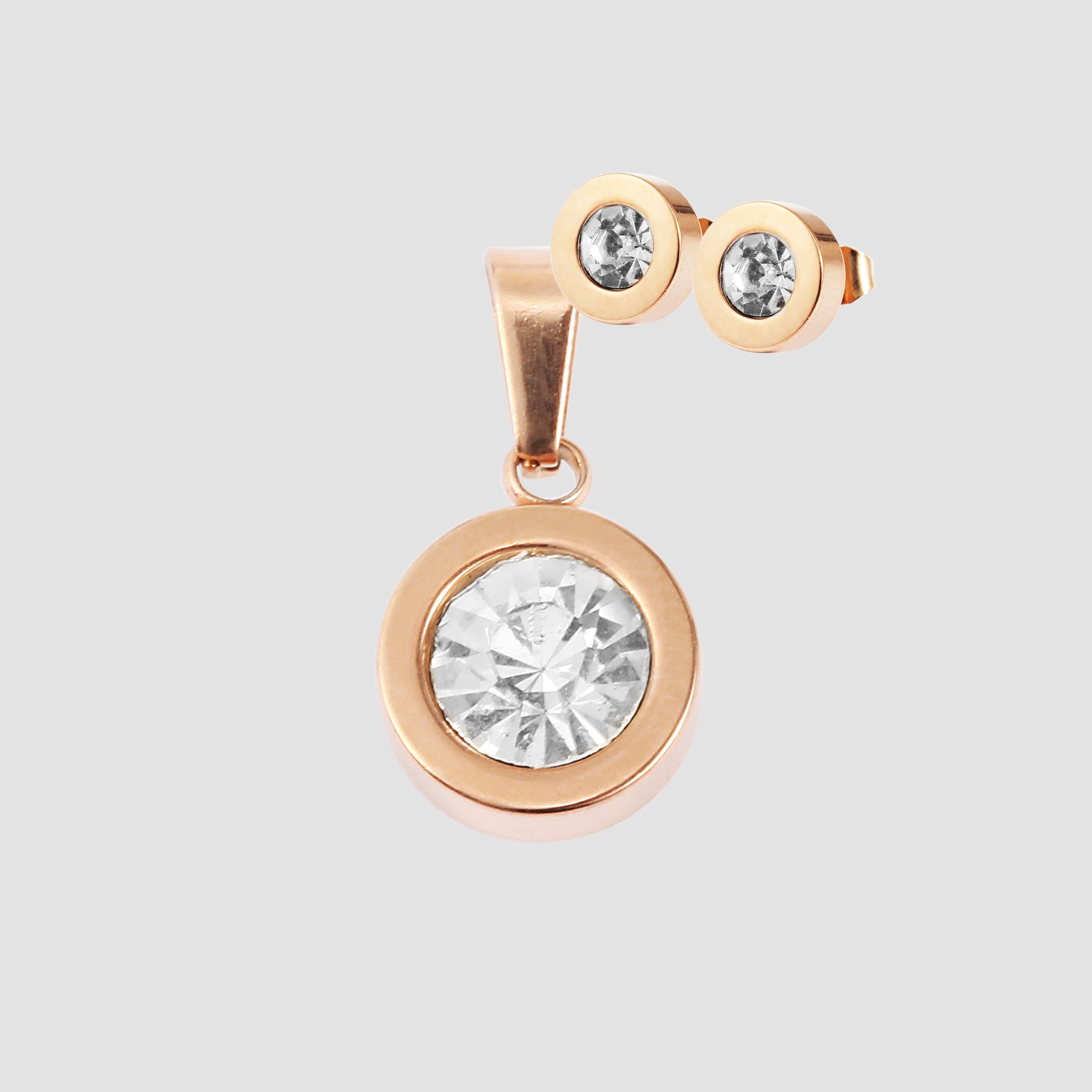 Productinformatie "Akzent Edelstahl Schmuckset aus Anhänger und Ohrstecker, mit Glasstein, roségoldfarbig"