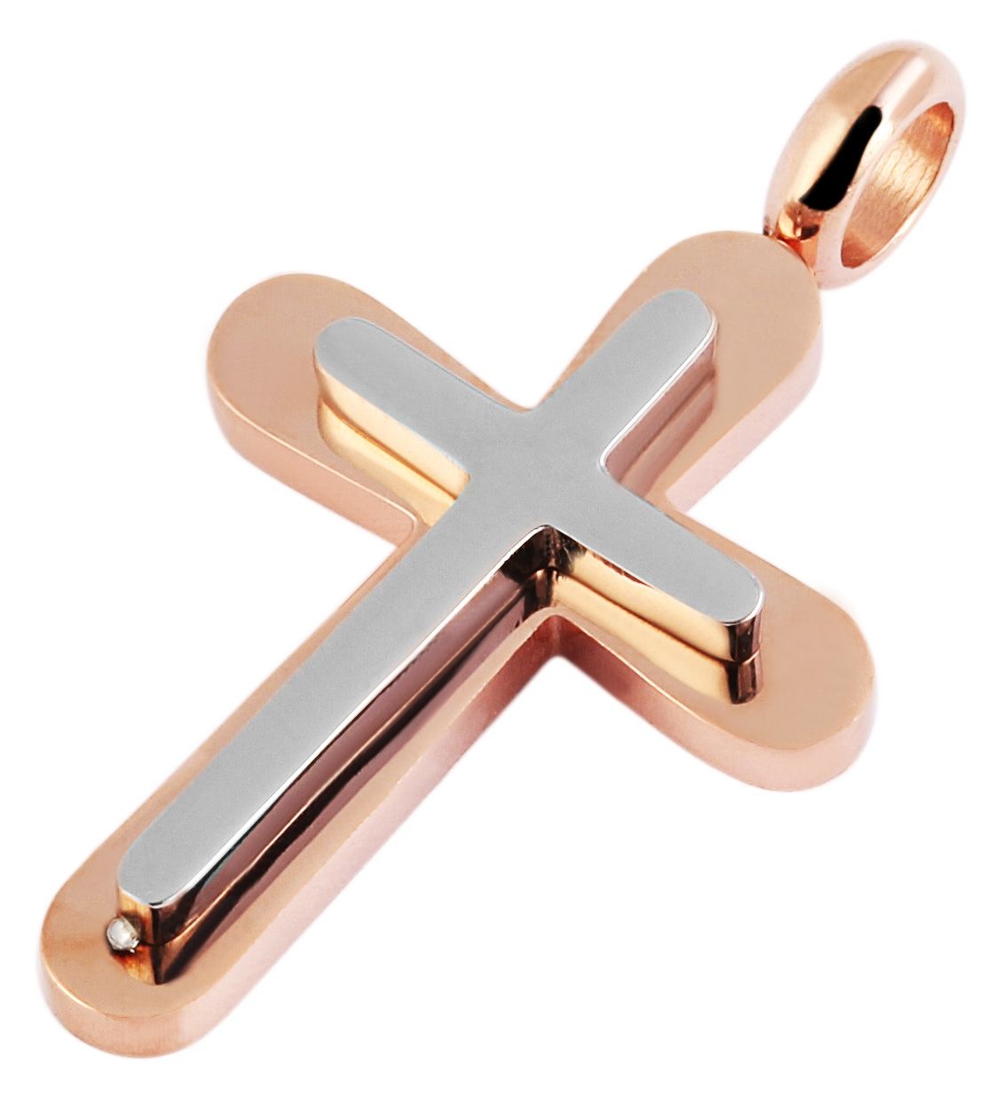 Productinformatie "Accent hanger van roestvrij staal, kruis, zilver/roze goudkleurig"