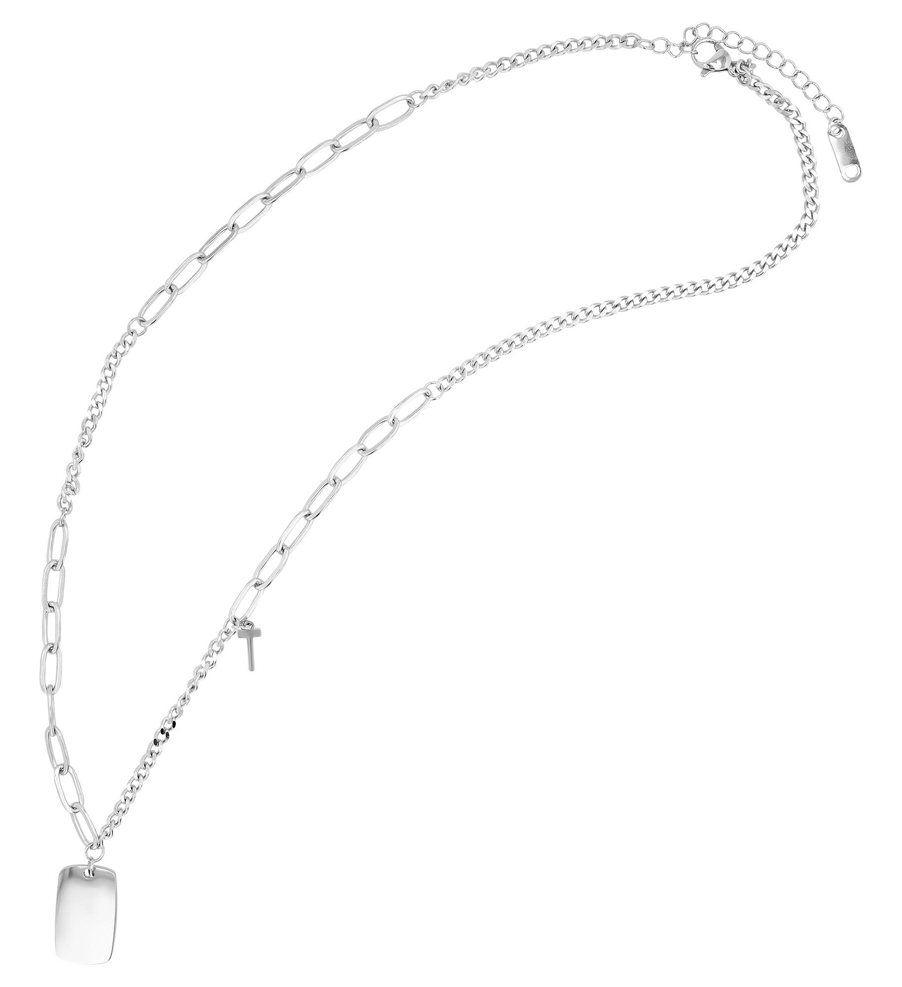 Productinformatie "Akzent Edelstahlkette "Tariq" mit Gravuranhänger, zwei Kettenarten, silberfarben"