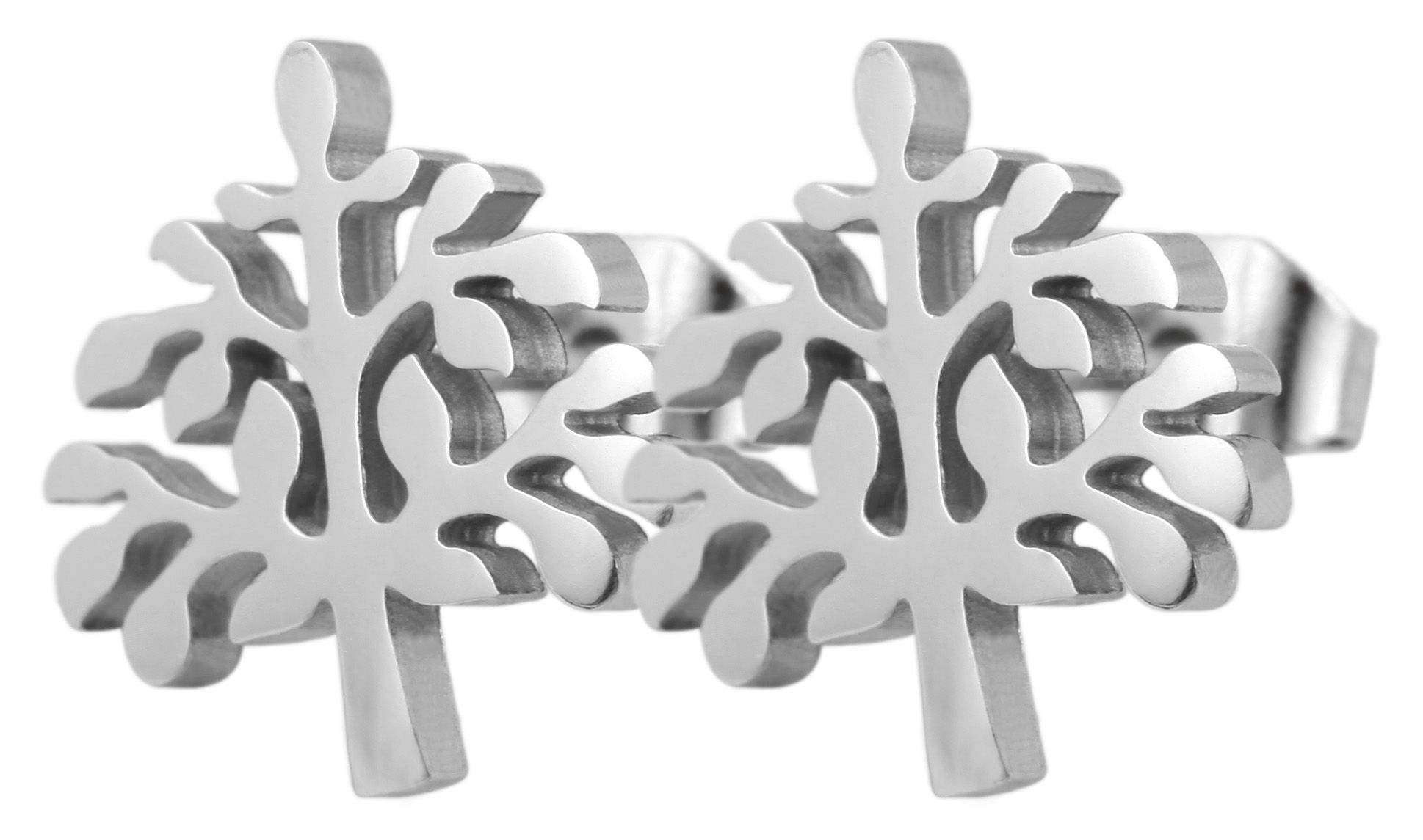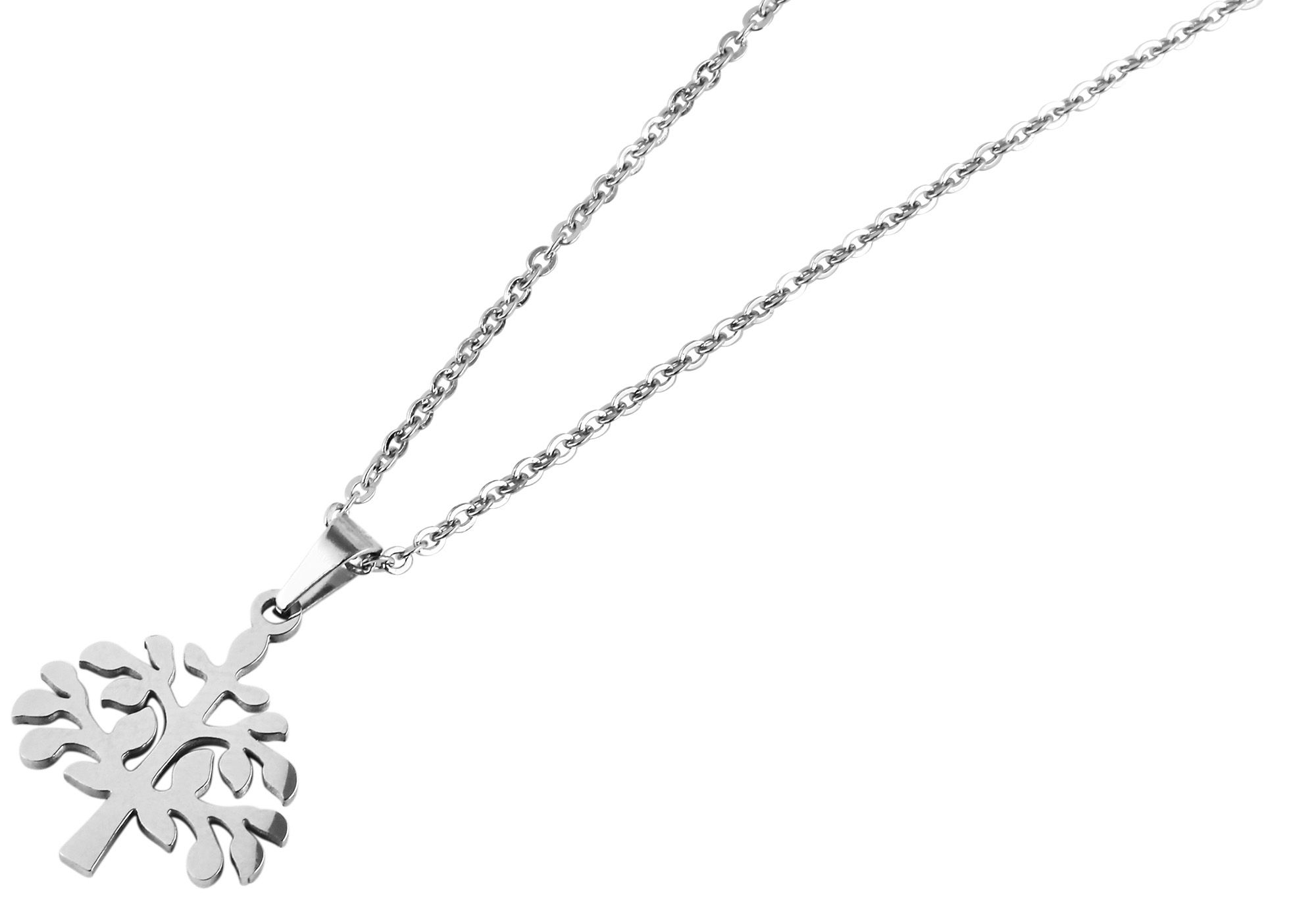 Productinformatie "Akzent Edelstahlschmuckset (Kette mit Anhänger & Ohrringe), Lebensbaum, silberfarbig"