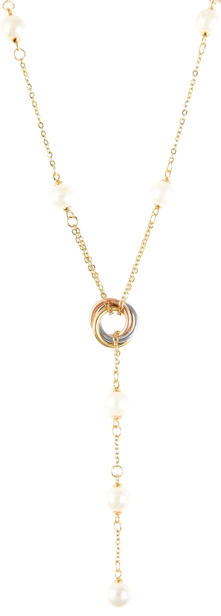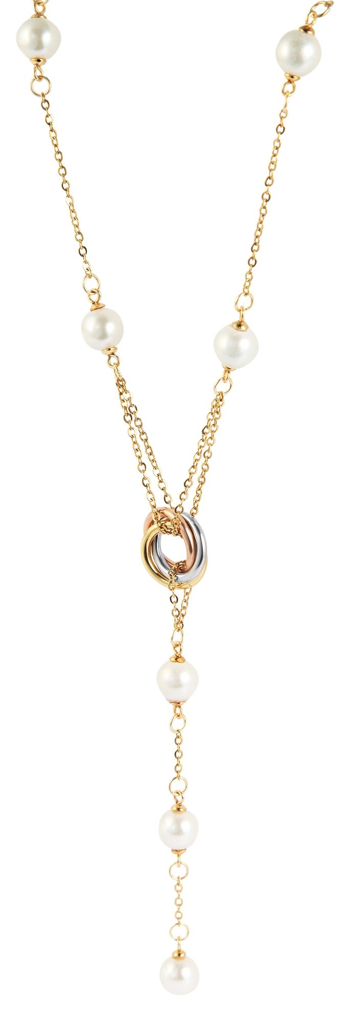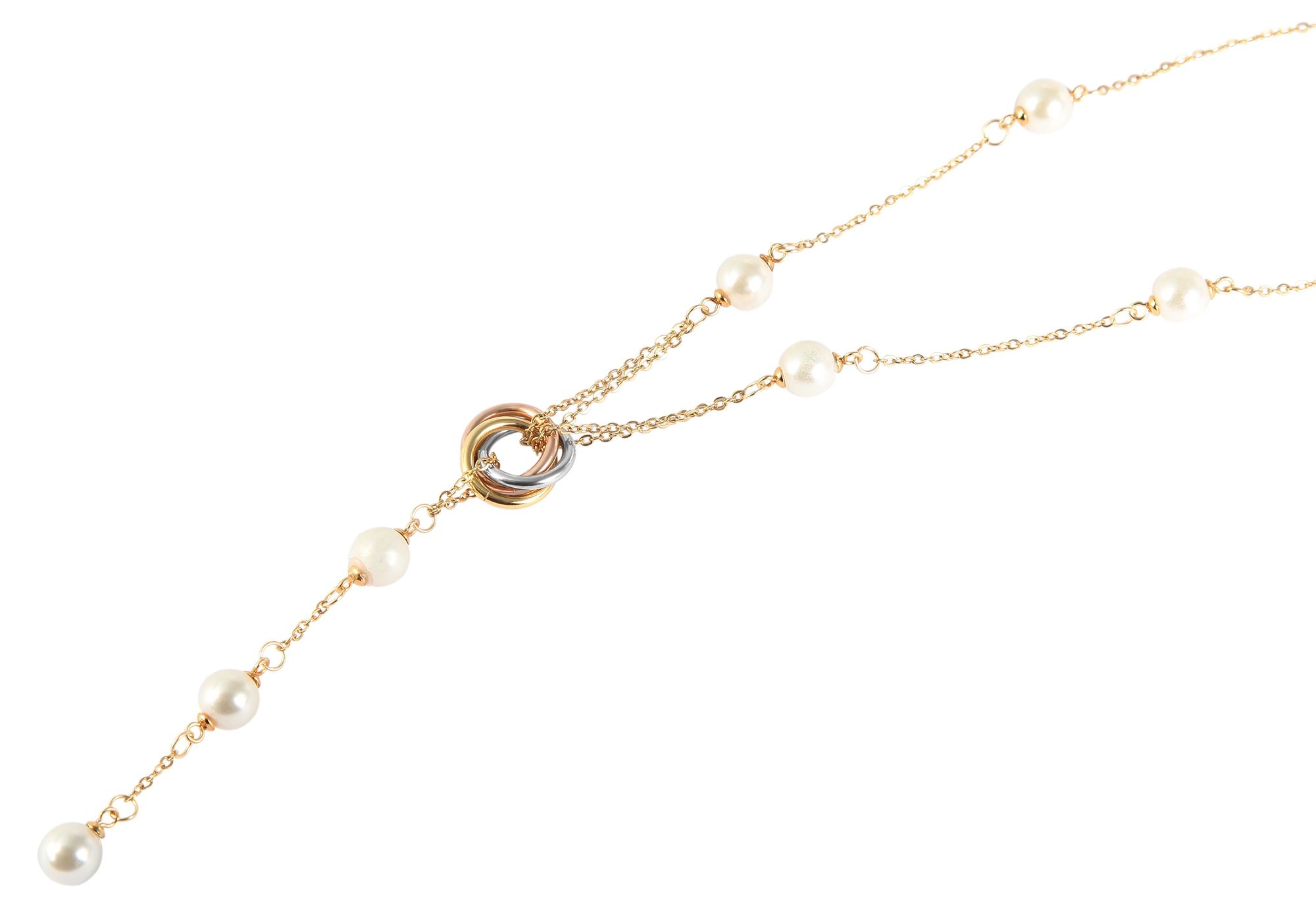 Productinformatie "Akzent Edelstahlschmuckset (Kette und Ohrringe), mit Wasserperlen, goldfarbig"