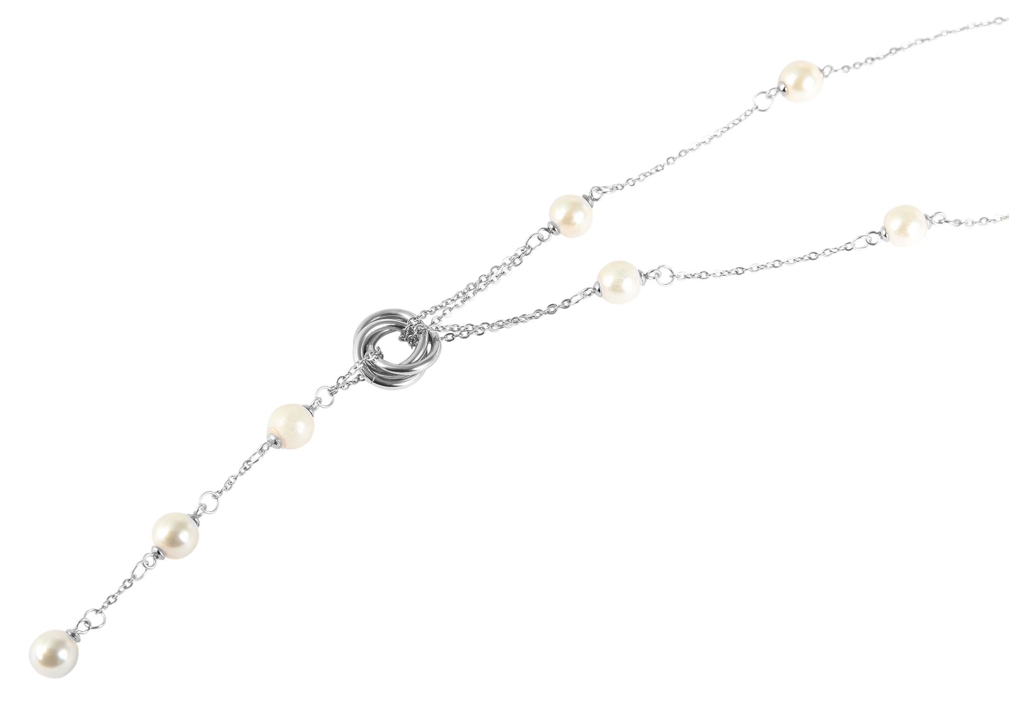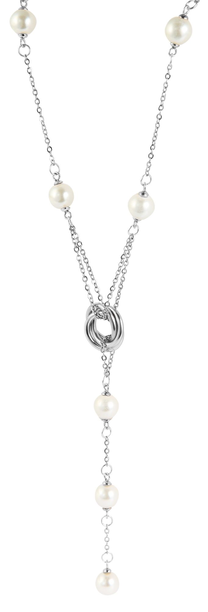 Productinformatie "Akzent Edelstahlschmuckset (Kette und Ohrringe), mit Wasserperlen, silberfarbig"
