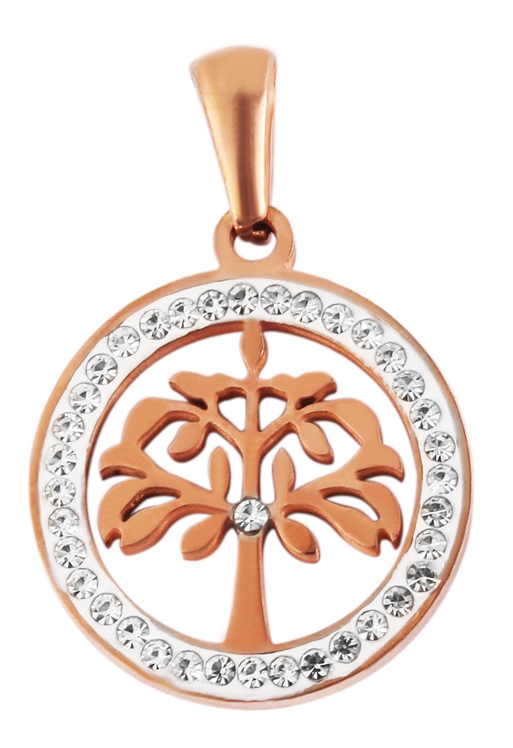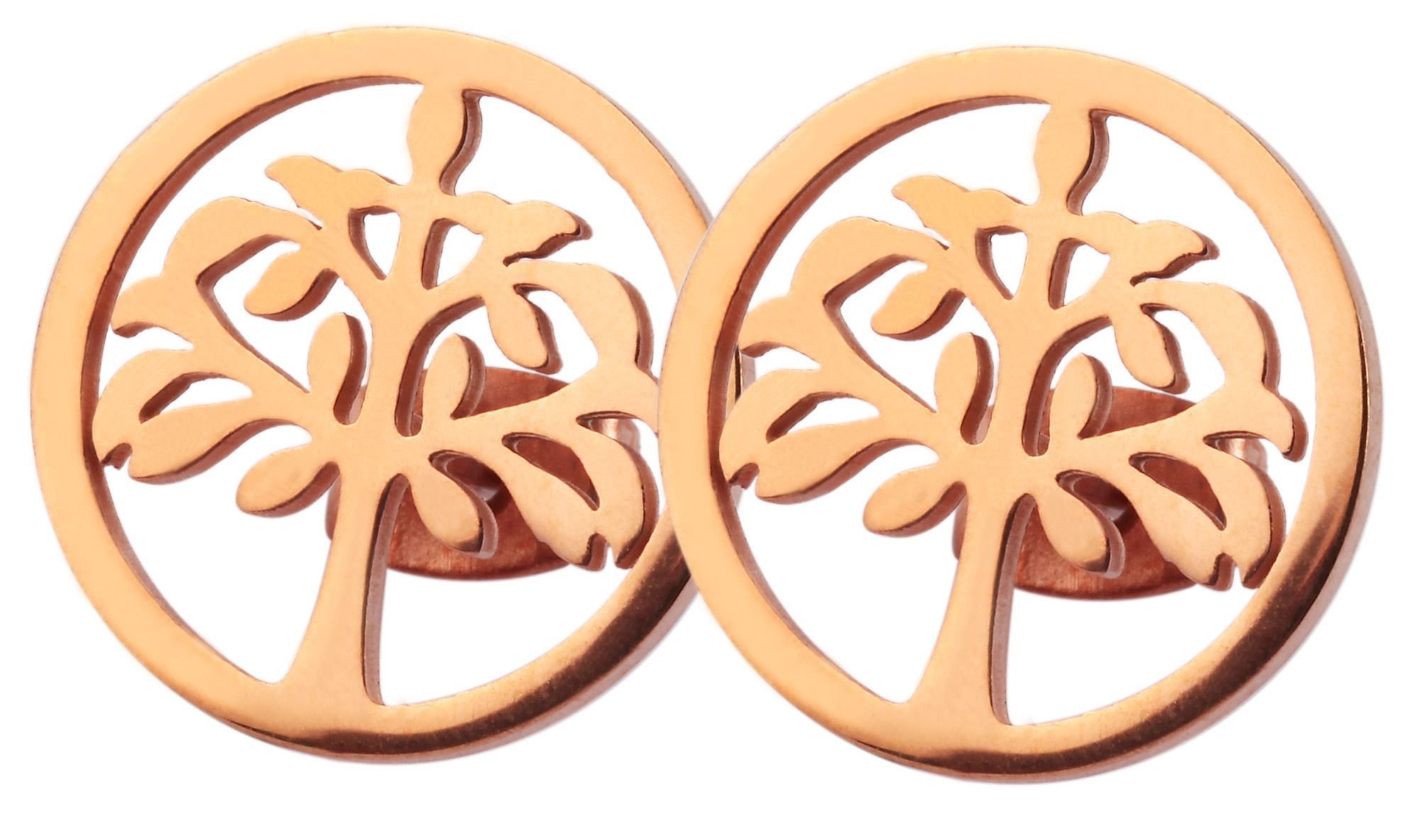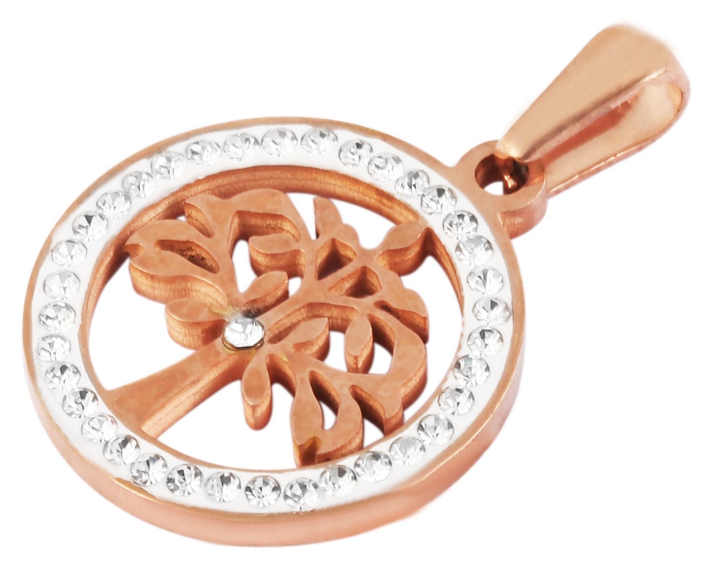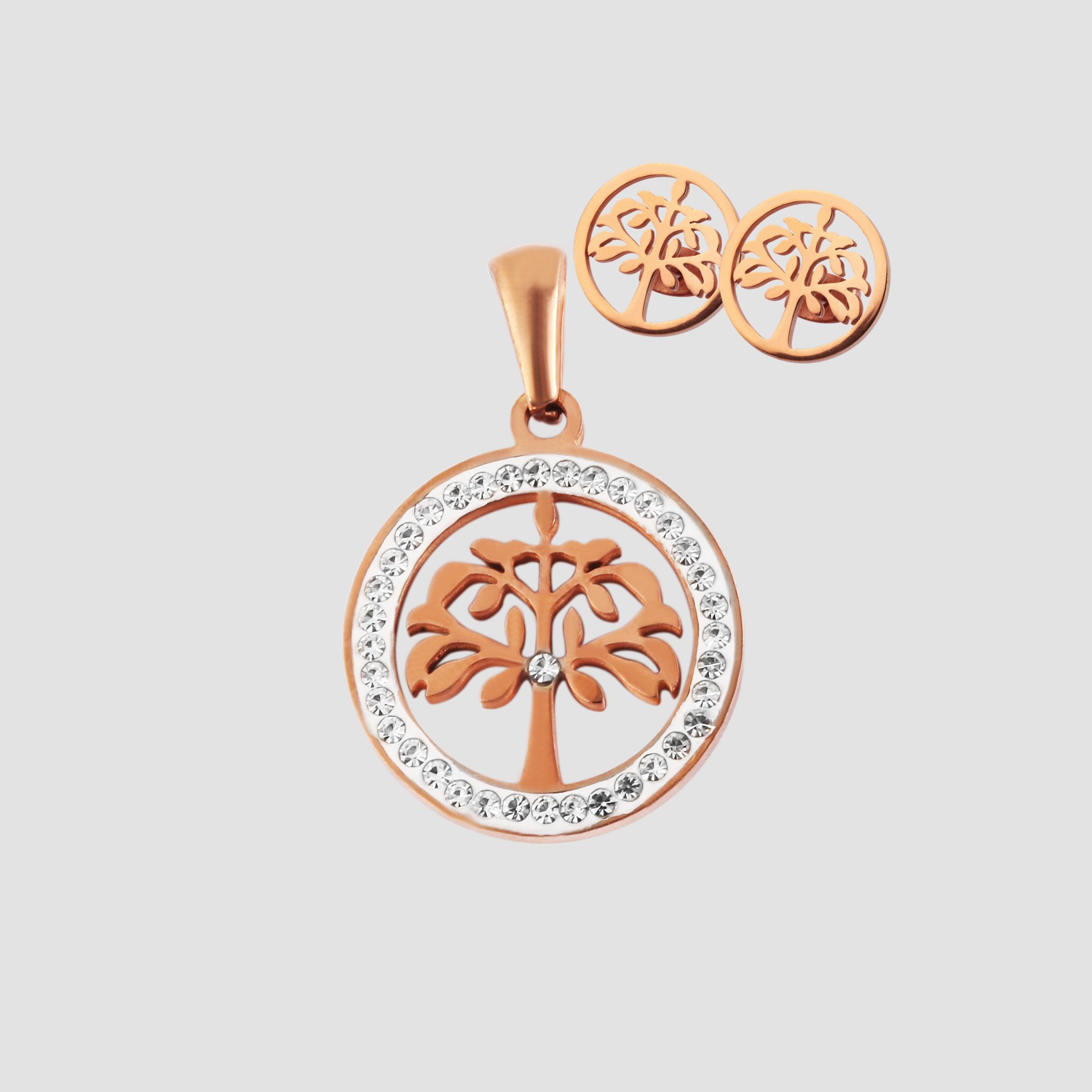 Productinformatie "Akzent Edelstahlschmuckset Lebensbaum (Kettenanhänger und Ohrringe), mit Similibesatz, roségoldfarbig"