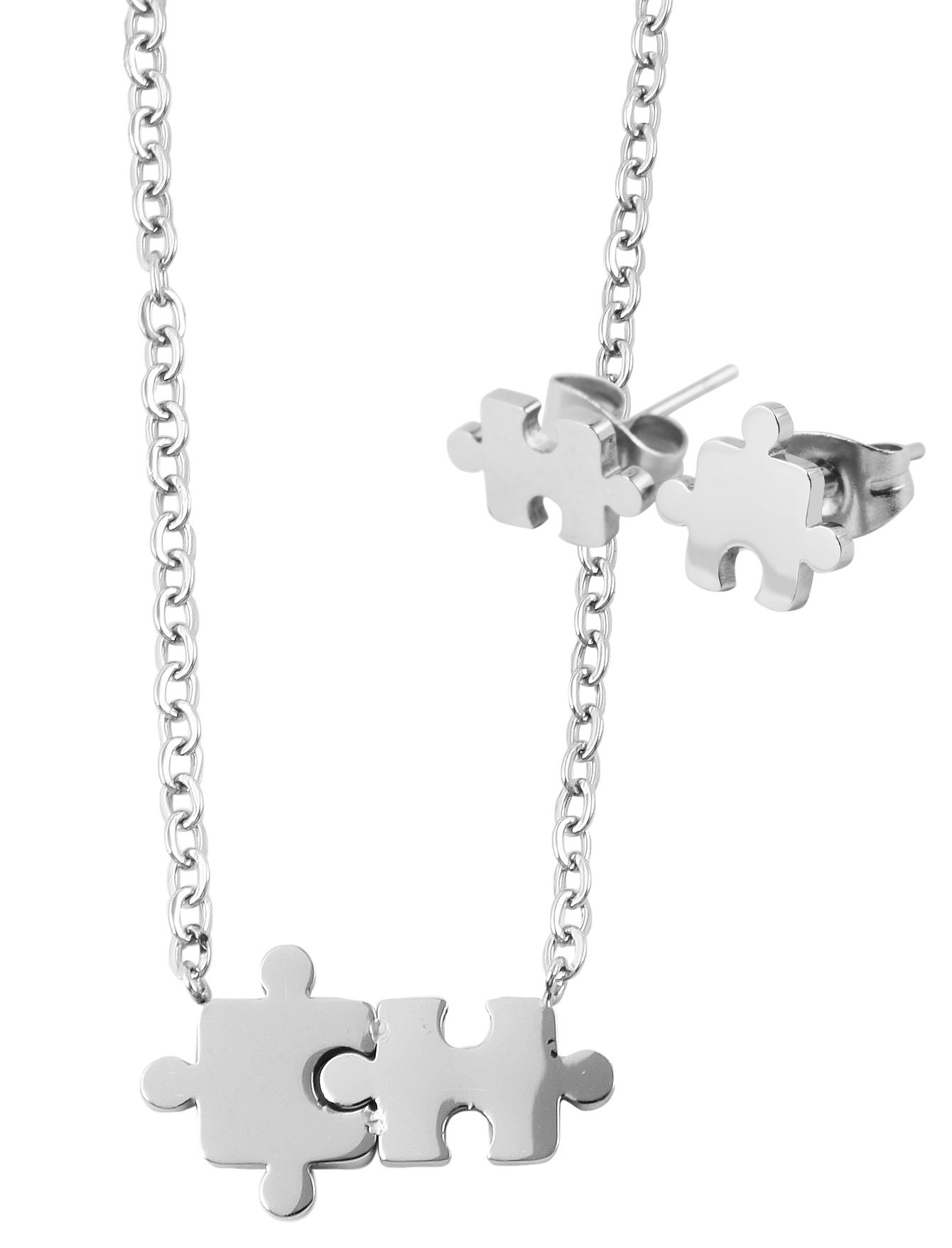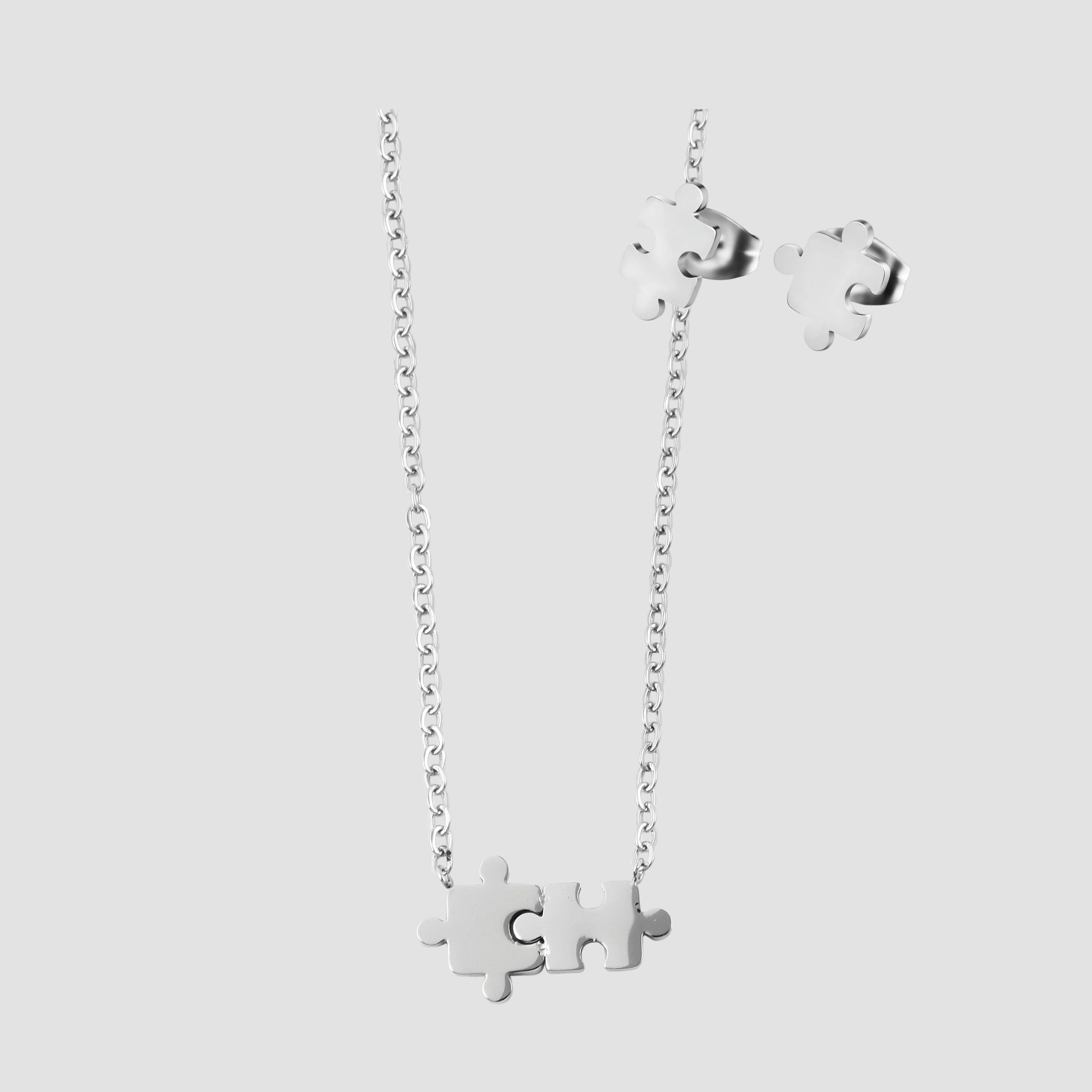 Productinformatie "Akzent Edelstahlschmuckset, Puzzleteile, silberfarben"