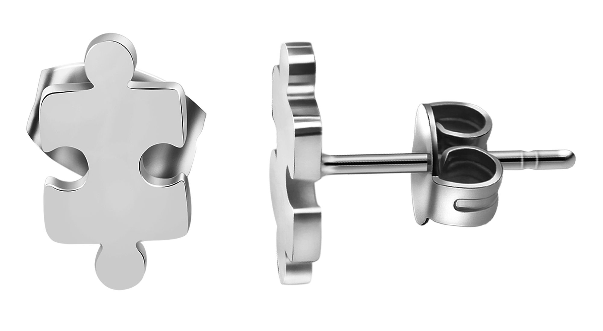De zilverkleurige sieradenset, bestaande uit oorstekers en een bijpassende hanger met een ketting van puzzelstukjes, is gemaakt van roestvrij staal. De oorstekers, die elk uit een puzzelstukje bestaan, zijn 9 mm lang, 5 mm breed en 1 mm dik. De oorbellen kunnen met een vleugelschroef aan het oorgat worden bevestigd. De siliconen oormoer zorgt voor extra houvast. De bijpassende hanger met een ketting van 43 cm, die nog eens met 5 cm verlengd kan worden, kan heel goed gecombineerd worden met de puzzel oorstekers. De hanger heeft een lengte van 9 mm, een breedte van 15 mm en een dikte van 1 mm. De sieradenset is een geweldige allround blikvanger en ook een uitstekend cadeau.